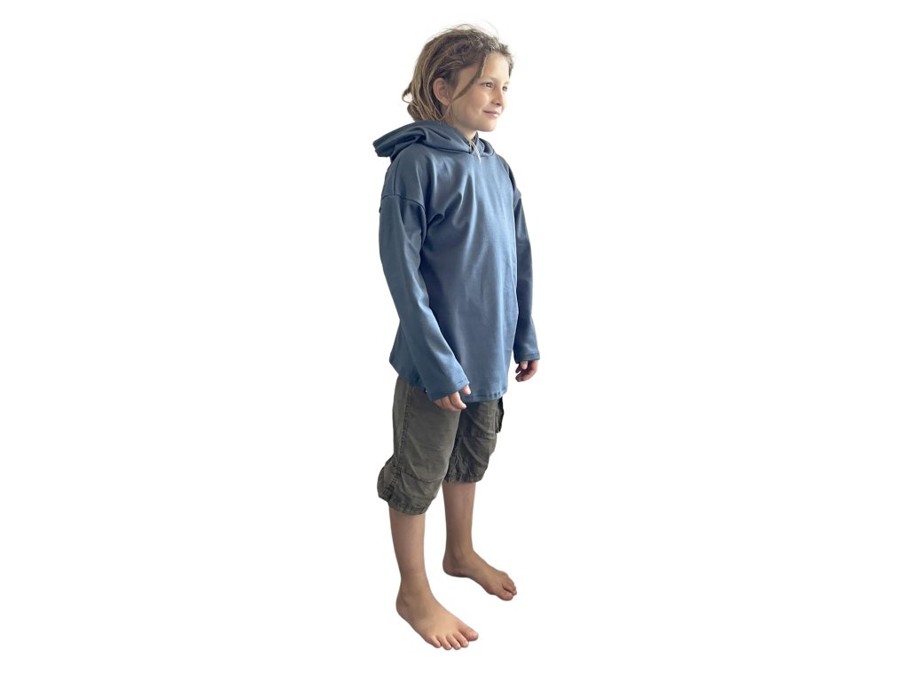 Dětská mikina Skřítek se špičatou kapucí - modrá