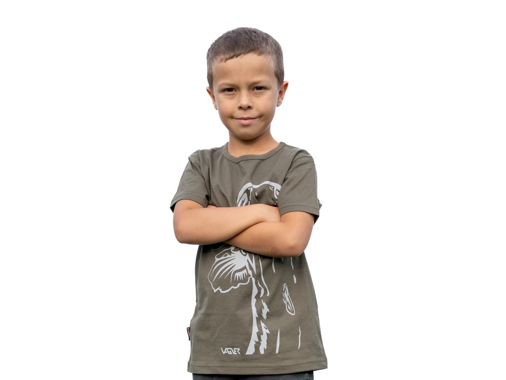 Dětské bavlněné tričko Silurus klasického střihu zdobí potisk na předním díle, typický pro kolekci VAGNER. Materiál je jednolícní pletenina o plošné hmotnosti 180 g/m2. 100 % bavlna. Změkčeno praním.