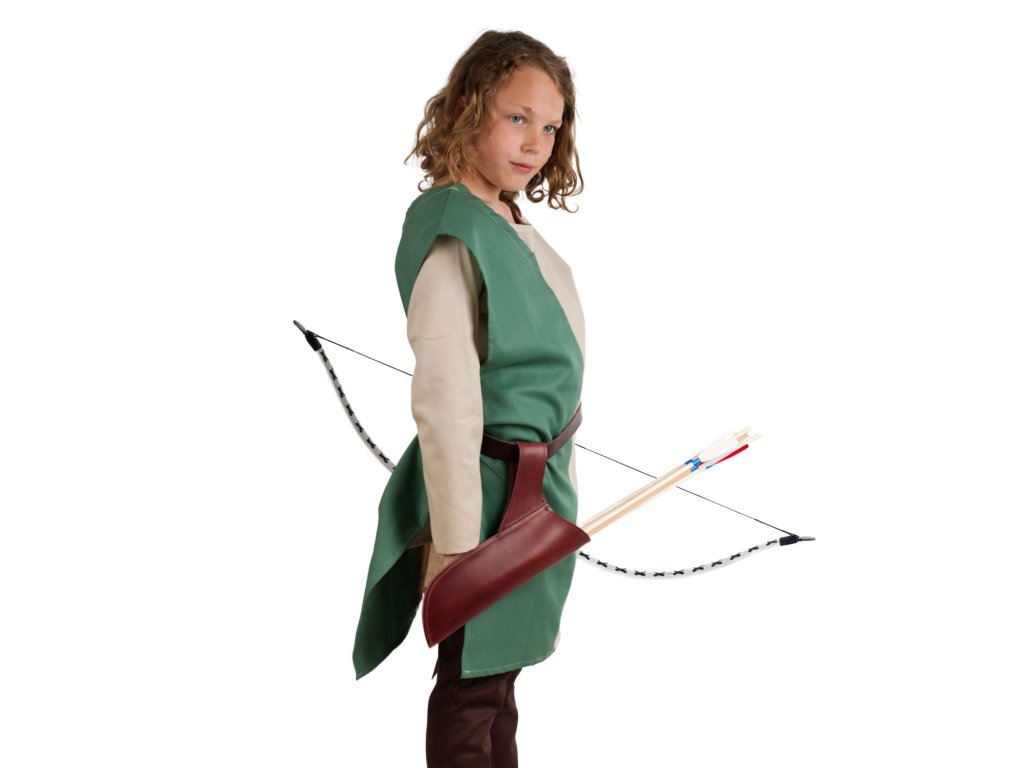 Kožený toulec na šípy s širokým poutkem k zavěšení na opasek, které zajistí stabilitu toulce při pohybu. Lze jej nosit na pravém i levém boku. Vhodný pro malé lovce lesních běsů, kteří jsou neustále na nohou. Pojme cca 15 terčových šípů (do délky 60 cm, doporučujeme např. šíp k dětskému luku). Ve dvou barevných variantách: hnědá a černá.Diskusia