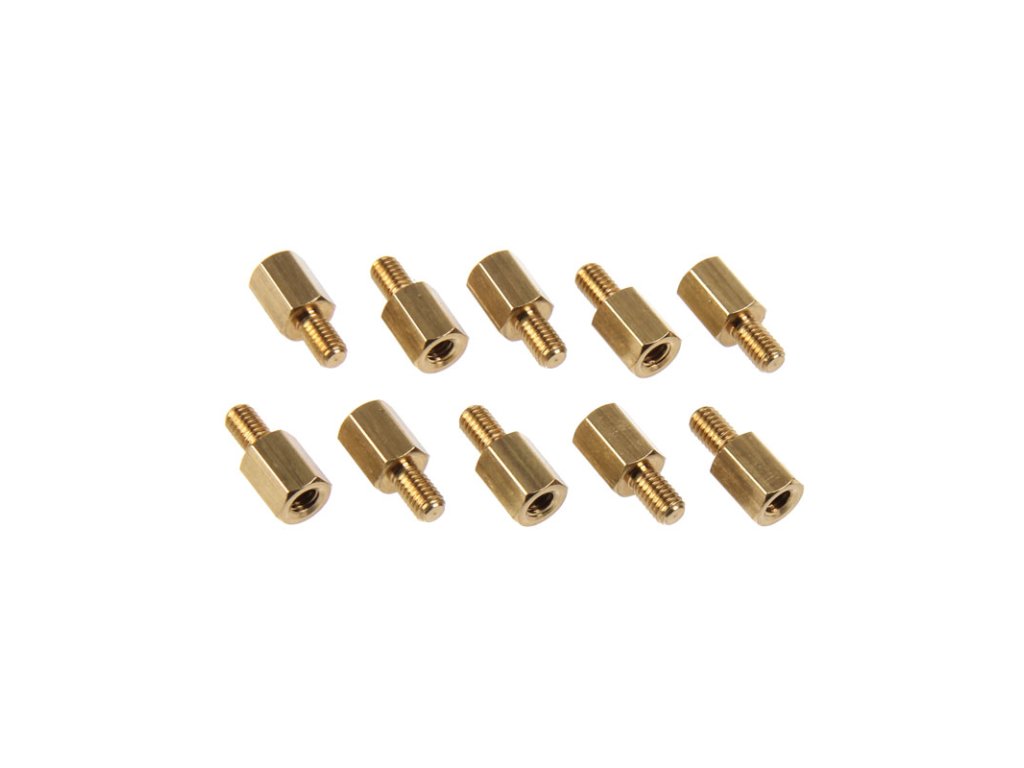 Otravná téma malých dielov - po (počiatočnej) inštalácii do krytu nebola zrejmá potreba všetko uschovať alebo uložiť na miesto, kde sa to dá ľahko a rýchlo nájsť. Problém sa však môže stať akútnym pri konverzii alebo testovaní hardvéru, ak sú tieto diely potrebné, ale nie je možné ich nájsť.Nemajte obavy! Tieto dištančné podložky sa používajú na inštaláciu základnej dosky do puzdier s metrickým závitom a dodávajú sa v balení po 10 kusoch. Šesťhranné skrutky sa dajú namontovať aj bez použitia náradia.