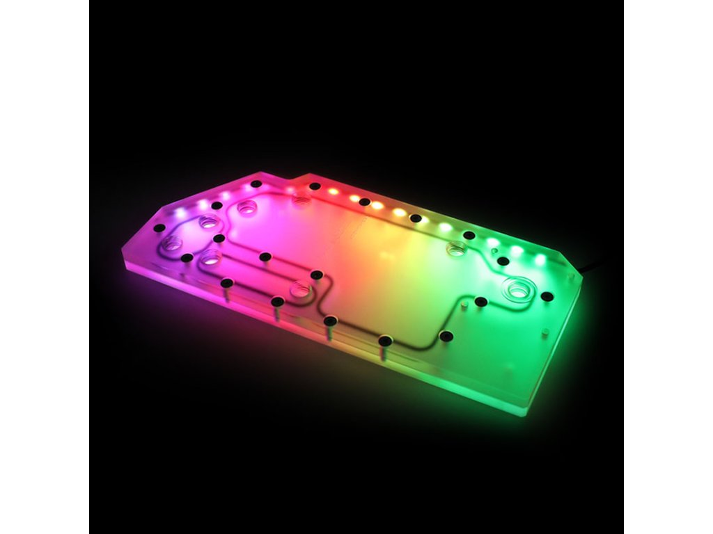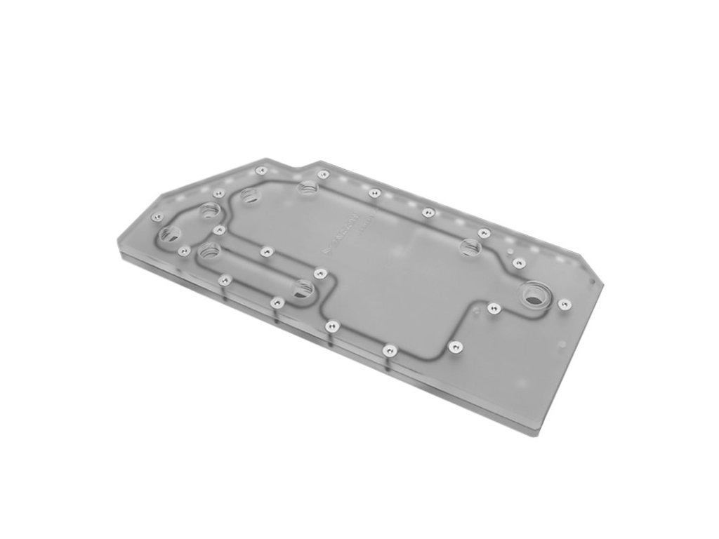 Distroplate Barrow sa montuje do vnútornej časti vášho MOD-3 priamo vedľa základnej dosky. Môžete ju použiť na realizáciu vlastnej slučky s čo najmenším počtom ohybov a na vzájomné prepojenie CPU, GPU a chladičov.