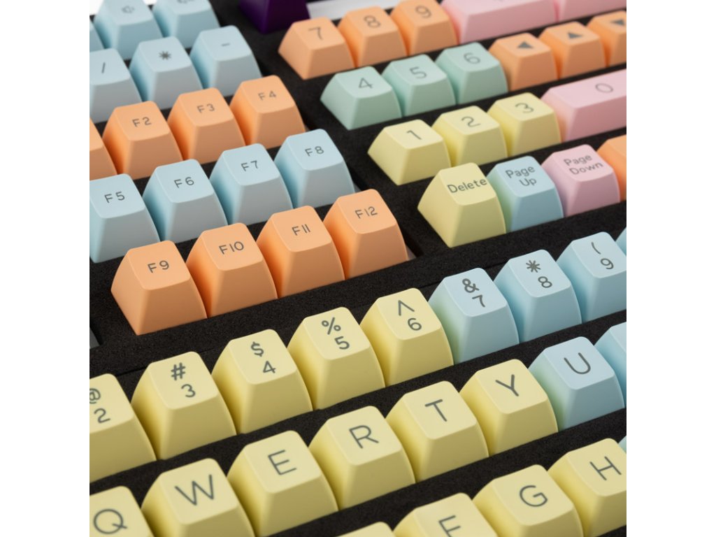 Tu ponúkaná súprava Ducky obsahujeKlávesnice ktoré pozostávajú zPlast ABS pozostáva z. Sada obsahuje 108 klávesov v americkom rozložení pre klávesnicu plnej veľkosti. Klávesy nie sú priesvitné.