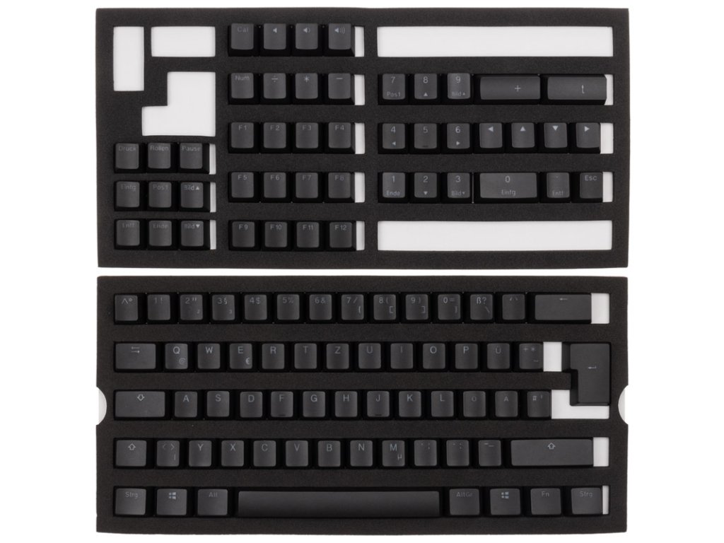 Súčasťou balenia je dostatok krytov na výmenu všetkých klávesov na mechanickej klávesnici s nemeckým rozložením ISO na čierne alebo na výmenu všetkých krytov naraz.
