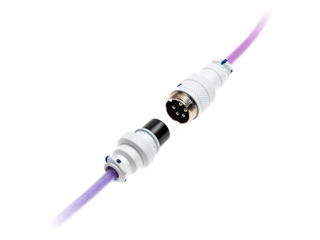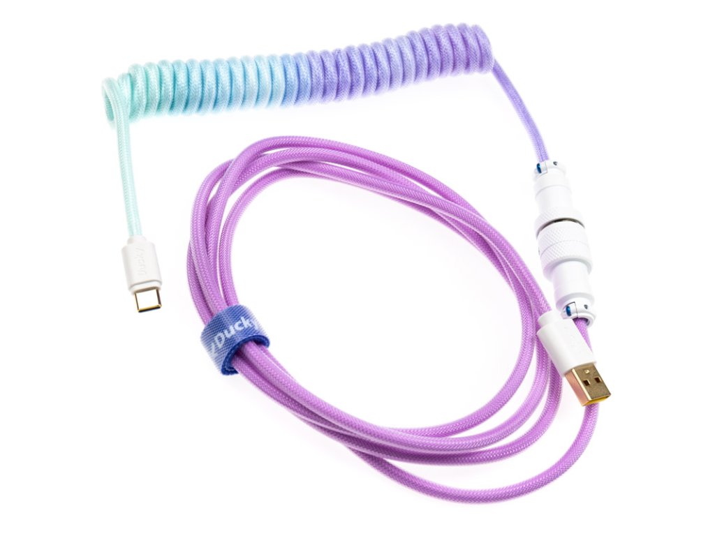 SPremicord ponukyDucky štýlový spôsob, ako prezentovať svoju mechanickú hernú klávesnicu. SamozatváracíŠpirálový kábel je odĺžka 1,8 m a je vybavený pružným nylonovým plášťom. Nielenže dobre vyzerá, ale chráni aj pred zlomením kábla a ľahko kĺže po stole. Opláštenie tu ponúkaných káblovFarebný variant Azure zobrazuje jemný farebný gradient od fialovej po modrú, zatiaľ čo spoje sú matne biele.Kábel je vybavenýPort USB-C na jednej strane a port USB-A na druhej strane na druhej strane, takže je kompatibilný s najnovšími klávesnicami Ducky. Päťkolíkový letecký konektor v pochrómovanom kryte spája obe časti kábla. Ak vlastníte rôzne Premicordy, môžete ich navzájom kombinovať a vytvárať nové zvuky. StránkaDucky Premicord spĺňa aj tie najvyššie nároky vďaka vysokej kvalite spracovania aspoľahlivo zabezpečuje rýchly prenos signálu cez USB 2.0 medzi klávesnicou a počítačom.