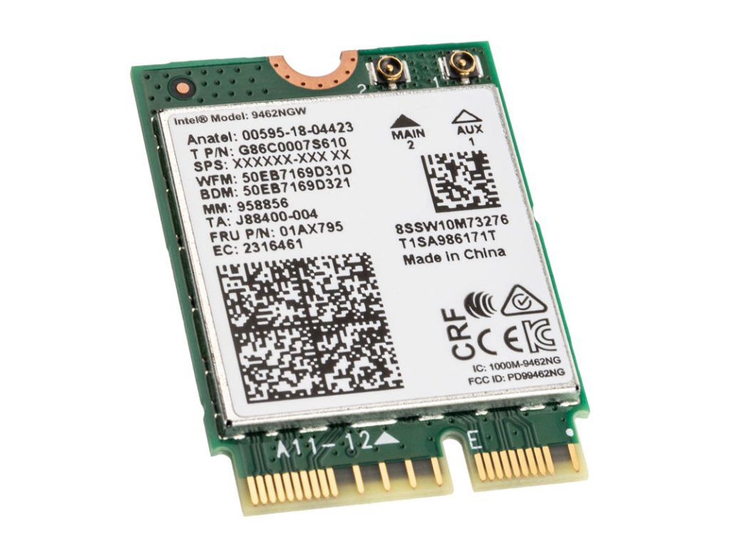 StránkaDvojpásmové bezdrôtové pripojenie Intel AC 9462 jeAdaptér WLAN a Bluetooth 5.0 vo forme modulu M.2 2230 s funkciami E-Key a Intel CNVi. Adaptér sa jednoducho zasunie do voľného slotu M.2 a pridá rýchlu sieť WLAN a Bluetooth do akéhokoľvek kompatibilného notebooku alebo počítača.ZabudovanýČipová súprava Intel 9462 umožňuje prenos môže byťrozsah 2,4 a 5 GHz a podporuje nový802.štandard 11ax. Dosahujú sa prenosové rýchlosti až 433 Mb/s (5 GHz). Okrem technológie MU-MIMO (Multi-User MIMO)Dvojpásmový modul Wireless-AC 9462 stáleBezdrôtový displej Intel.