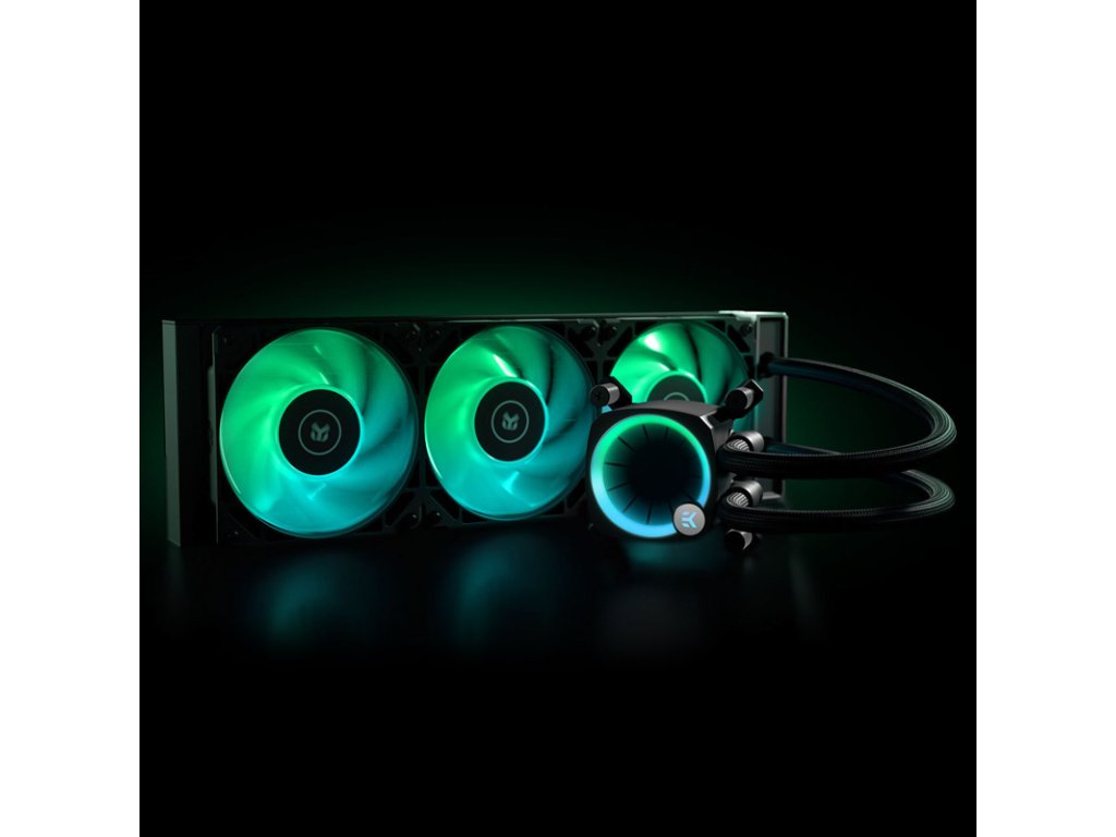 StránkaEK-Nucleus AIO CR360 Lux D-RGB je štýlový a výkonný systém vodného chladenia typu všetko v jednom s digitálne adresovateľným osvetlením RGB. Navrhnutý pre vysoký statický tlakVentilátor EK-Vardar 120 D-RGB a27 mm hrubý hliníkový radiátor s hustým chladiacim rebrovaním zabezpečuje účinný chladiaci výkon. StránkaEK-Nucleus AIO CR360 Lux D-RGB je kompatibilný s mnohými päticami AMD a Intel a ponúka vysoký výkon a tichú prevádzku v celkovo štýlovom a robustnom balení.Konštrukcia telesa čerpadla zabezpečuje jednoduchú a predovšetkým flexibilnejšiu inštaláciu. Obe hadice sú pripojené k čerpadlu PWM vedľa seba na otočných armatúrach. To znamená, že AiO možno umiestniť aj do menších skríň, kde je k dispozícii menej miesta. Samotné hadice sú vyrobené zo zosilnenej gumy a ich objímky sú extrémne jemne sieťované.