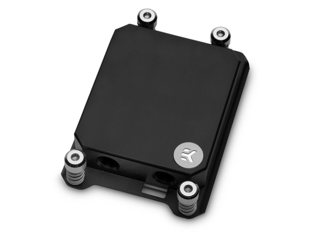 StránkaEK-Pro CPU WB sTR Rack Nikel + Acetal má dve prípojky na integráciu do vodného okruhu.