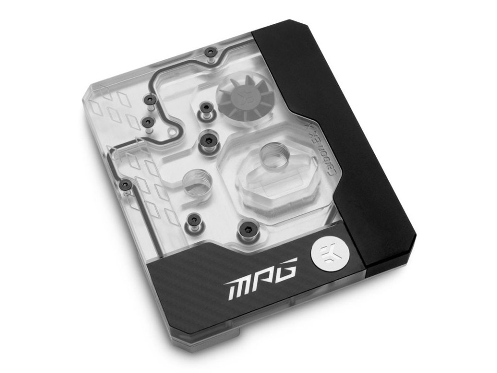 Špičkový monoblokEK-Quantum Momentum MPG Z590 Gaming Carbon - EK X Edition je efektívne a štýlové riešenie chladenia procesorov a meničov napätia naMSI MPG Z590 Carbon Gaming. Priehľadné akrylátové veko a adresovateľné osvetlenie D-RGB robia z tohto monobloku skutočný pútač pozornosti.Chladiaci povrchEK-Quantum Momentum MPG Z590 Gaming Carbon - EK X Editionje je vyrobený z vysoko čistej medi a boldodatočne poniklované. To zaručuje vysokú tepelnú vodivosť. To znamená, že procesor a menič napätia zostávajú chladné aj pri pretaktovaní. StránkaVeko je vyrobené z priehľadného akrylového skla a umožňuje pohľad na prúdiacu chladiacu kvapalinu. Je integrovaný do vodného okruhu prostredníctvom dvoch závitov G1/4 palca.