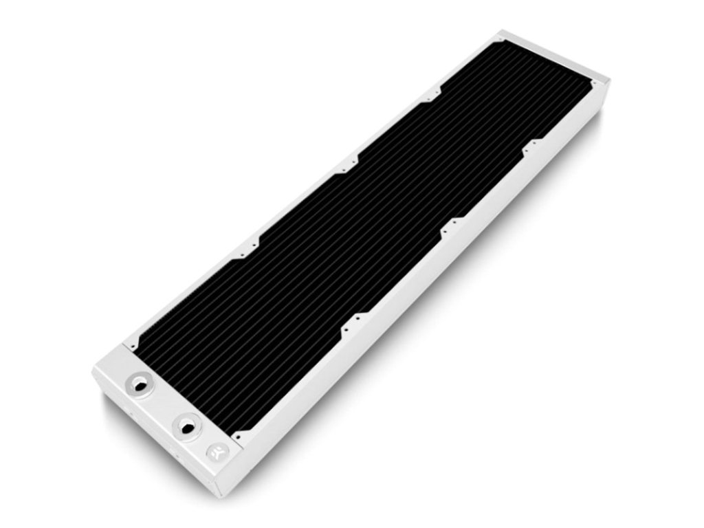 StajňaHliníkové koncovky s kontrastným strieborným povrchom dodať chladiču vysokokvalitný vzhľad. Pre povrchovú úpravu robustných oceľových bočných častíVodné bloky EK na odolnú pololesklú bielu farbu. Samotné lamely sú natreté matnou čiernou farbou s vysokým súčiniteľom tepelnej vodivosti.Vďaka dodaným skrutkám je tento chladič kompatibilný so 140 mm ventilátormi, ktoré majú štandardnú hrúbku 25 mm.