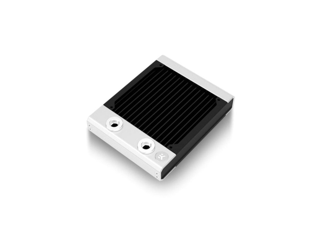 StajňaHliníkové koncovky s kontrastným strieborným povrchom dodať chladiču vysokokvalitný vzhľad. Pre povrchovú úpravu robustných bočných panelov z nehrdzavejúcej oceleVodné bloky EK na odolnú pololesklú farbu. Samotné lamely sú natreté matnou čiernou farbou s vysokým súčiniteľom tepelnej vodivosti.Technické údaje
