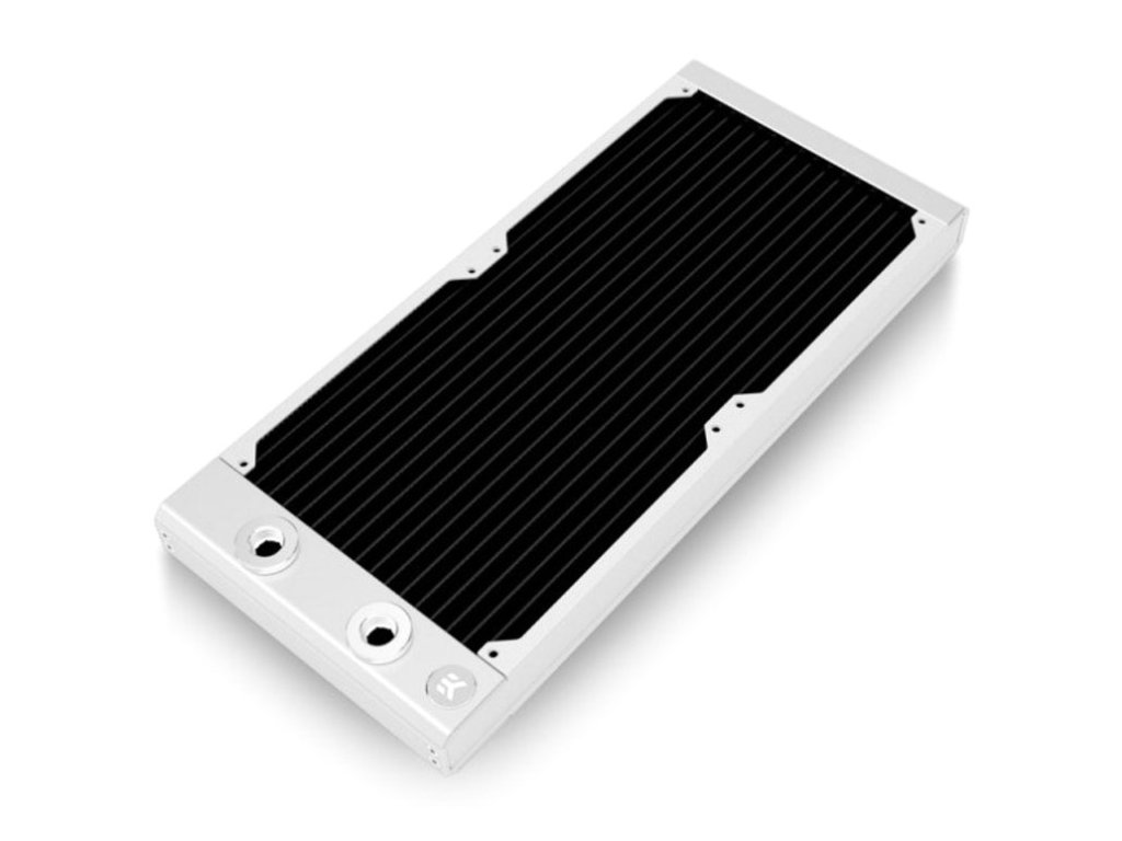 StajňaHliníkové koncovky s kontrastným strieborným povrchom dodať chladiču vysokokvalitný vzhľad. Pre povrchovú úpravu robustných bočných panelov z nehrdzavejúcej oceleVodné bloky EK na odolnú pololesklú farbu. Samotné lamely sú natreté matnou čiernou farbou s vysokým súčiniteľom tepelnej vodivosti.Technické údaje
