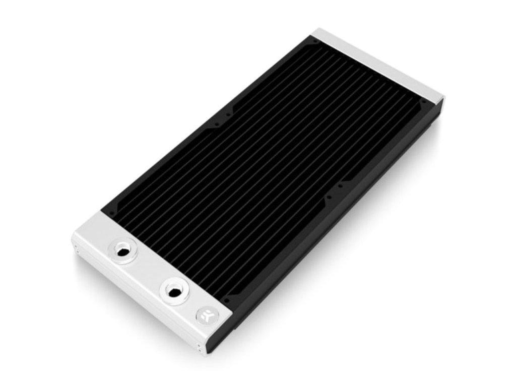 StajňaHliníkové koncovky s kontrastným strieborným povrchom dodať chladiču vysokokvalitný vzhľad. Pre povrchovú úpravu robustných bočných panelov z nehrdzavejúcej oceleVodné bloky EK na odolnú pololesklú farbu. Samotné lamely sú natreté matnou čiernou farbou s vysokým súčiniteľom tepelnej vodivosti.Technické údaje