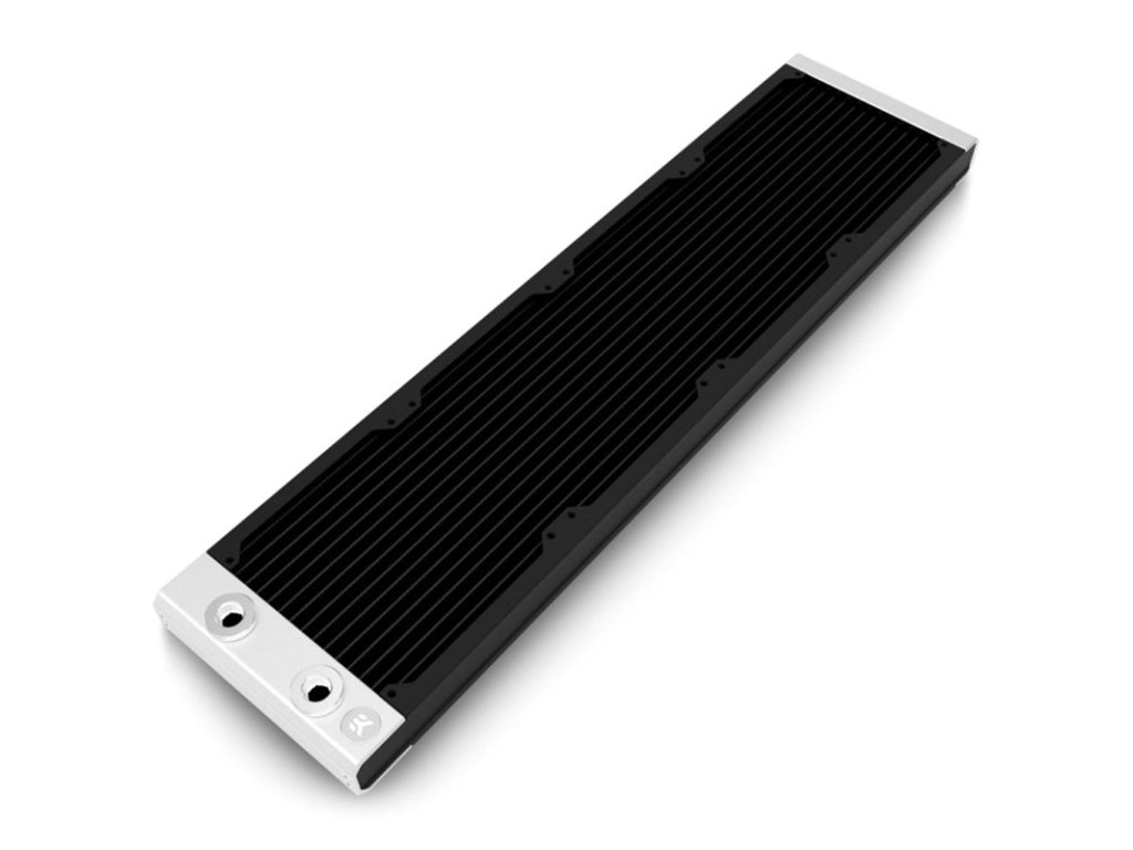 StajňaHliníkové koncovky s kontrastným strieborným povrchom dodať chladiču vysokokvalitný vzhľad. Pre povrchovú úpravu robustných bočných panelov z nehrdzavejúcej oceleVodné bloky EK na odolnú pololesklú farbu. Samotné lamely sú natreté matnou čiernou farbou s vysokým súčiniteľom tepelnej vodivosti.Technické údaje