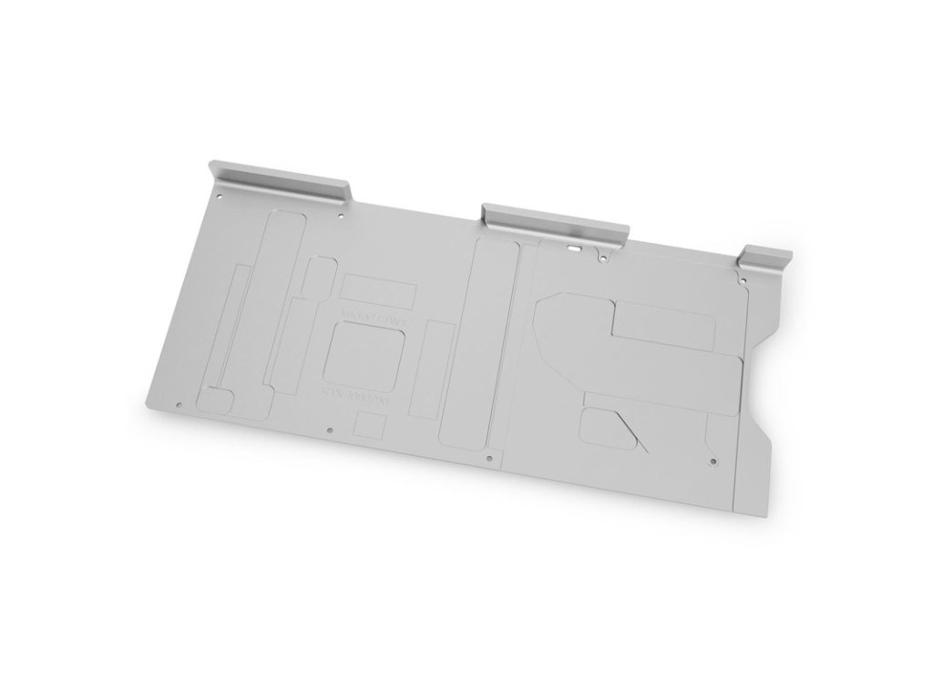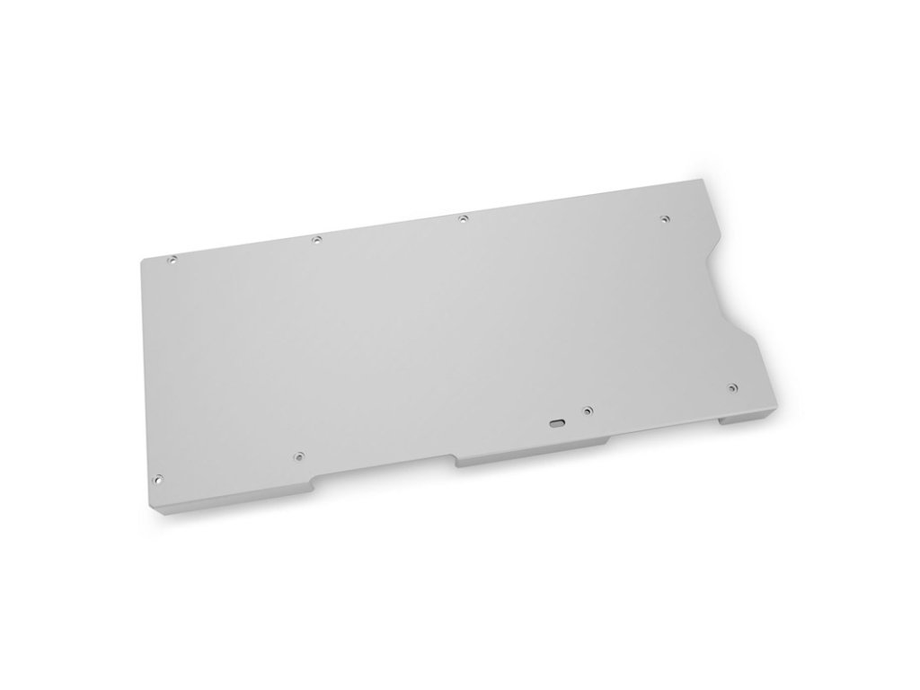 Zadná doska je k dispozícii len v spojení s vhodným chladiacim blokom GPU odVodné bloky EK je priskrutkovaný na zadnej strane grafickej karty a úplne ju zakrýva. Keďže zadná časť grafického procesora je zvyčajne otočená smerom nahor, a preto je v kryte dobre viditeľná, vizuálne vylepšenie je tu oveľa účinnejšie ako na prednej strane grafickej karty.Okrem vizuálneho vylepšenia ponúka zadná doska aj väčšiu stabilitu. Účinne tak zabraňuje tomu, aby sa doska plošných spojov ohýbala v dôsledku jednostranného uťahovania skrutiek pri pripájaní hlavného chladiča a bola tak trvalo vystavená namáhaniu.