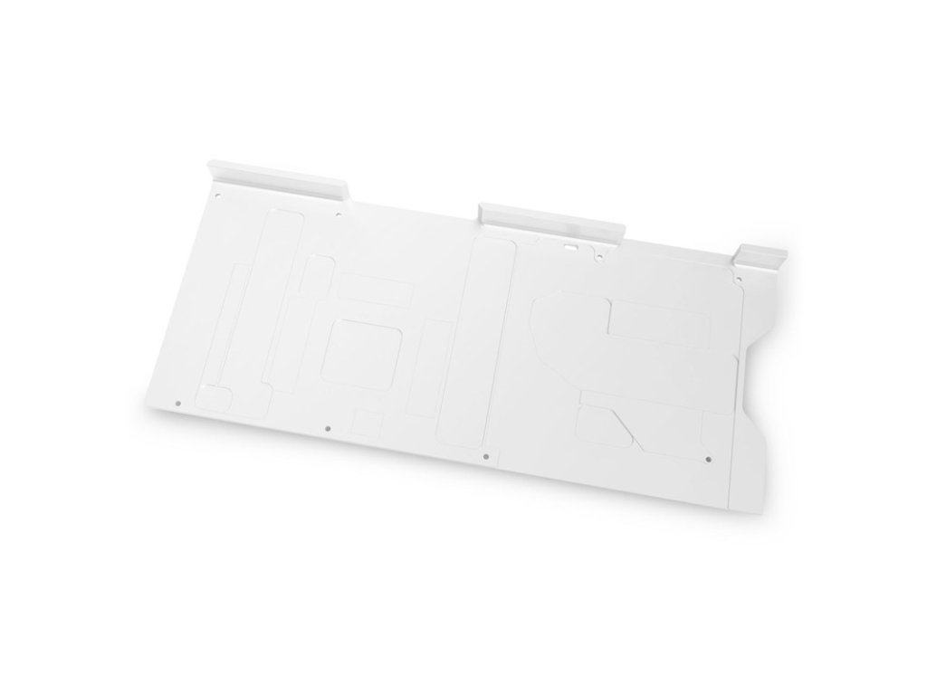 Zadná doska je k dispozícii len v spojení s vhodným chladiacim blokom GPU odVodné bloky EK je priskrutkovaný na zadnej strane grafickej karty a úplne ju zakrýva. Keďže zadná časť grafického procesora je zvyčajne otočená smerom nahor, a preto je v kryte dobre viditeľná, vizuálne vylepšenie je tu oveľa účinnejšie ako na prednej strane grafickej karty.Okrem vizuálneho vylepšenia ponúka zadná doska aj väčšiu stabilitu. Účinne tak zabraňuje tomu, aby sa doska plošných spojov ohýbala v dôsledku jednostranného uťahovania skrutiek pri pripájaní hlavného chladiča a bola tak trvalo vystavená namáhaniu.