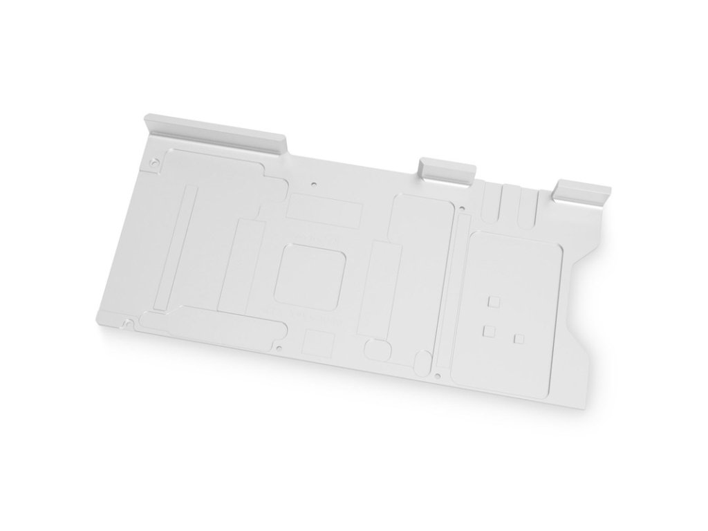 Zadná doska je k dispozícii len v spojení s vhodným chladiacim blokom GPU odVodné bloky EK je priskrutkovaný na zadnej strane grafickej karty a úplne ju zakrýva. Keďže zadná časť grafického procesora je zvyčajne otočená smerom nahor, a preto je v kryte dobre viditeľná, vizuálne vylepšenie je tu oveľa účinnejšie ako na prednej strane grafickej karty.Okrem vizuálneho vylepšenia ponúka zadná doska aj väčšiu stabilitu. Účinne tak zabraňuje tomu, aby sa doska plošných spojov ohýbala v dôsledku jednostranného uťahovania skrutiek pri pripájaní hlavného chladiča a bola tak trvalo vystavená namáhaniu.