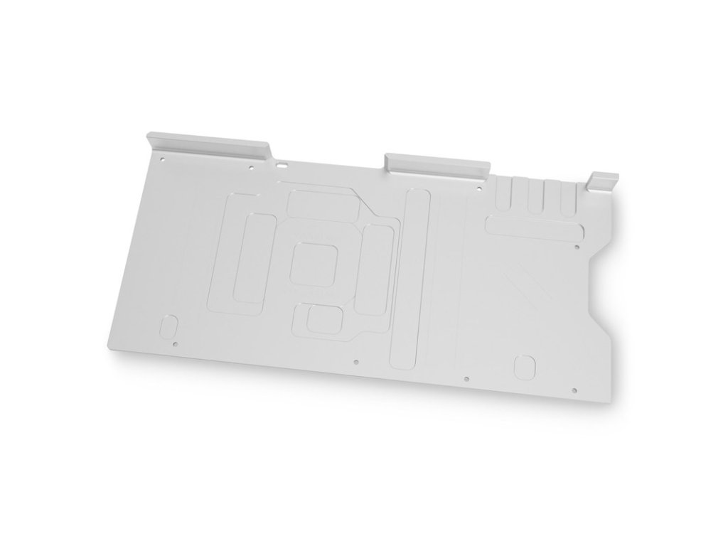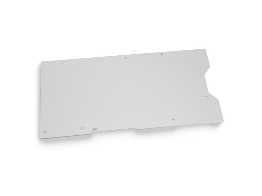 Zadná doska je k dispozícii len v spojení s vhodným chladiacim blokom GPU odVodné bloky EK je priskrutkovaný na zadnej strane grafickej karty a úplne ju zakrýva. Keďže zadná časť grafického procesora je zvyčajne otočená smerom nahor, a preto je v kryte dobre viditeľná, vizuálne vylepšenie je tu oveľa účinnejšie ako na prednej strane grafickej karty.Okrem vizuálneho vylepšenia ponúka zadná doska aj väčšiu stabilitu. Účinne tak zabraňuje tomu, aby sa doska plošných spojov ohýbala v dôsledku jednostranného uťahovania skrutiek pri pripájaní hlavného chladiča a bola tak trvalo vystavená namáhaniu.