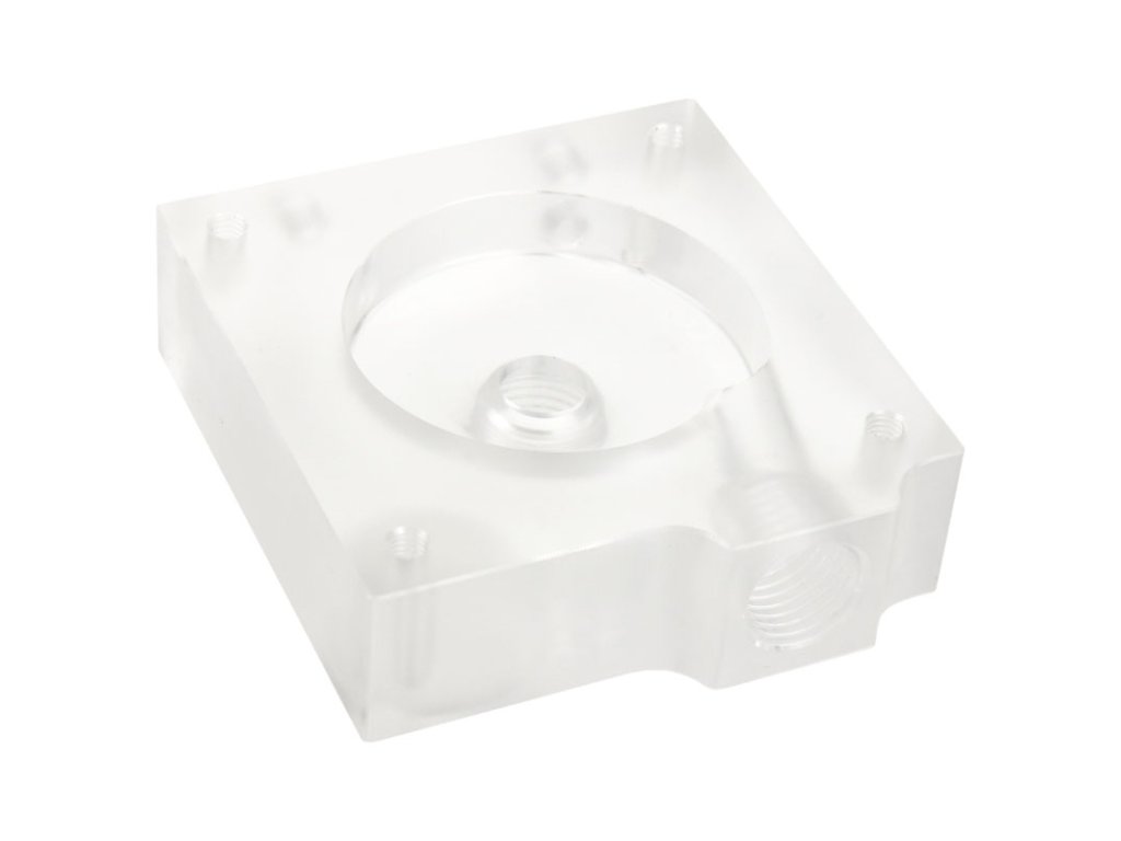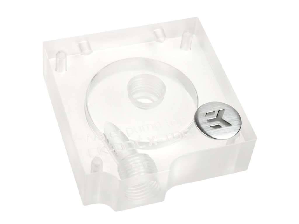 EK-XTOP DDC je prefabrikovaný obdĺžnikový kryt z akrylátu, ktorý vyzerá mimoriadne dobre. Podľa výrobcu by mal kryt v spojení s voliteľným čerpadlom DDC poskytovať až o 15 % vyšší hydraulický výkon ako pôvodná hlava čerpadla. Okrem toho je čerpadlo uložené na oddelených ložiskách, čo znižuje hluk spôsobený vibráciami. Dva porty G1/4 možno pripojiť prakticky k akémukoľvek pripojeniu Wakü s portom G1/4.