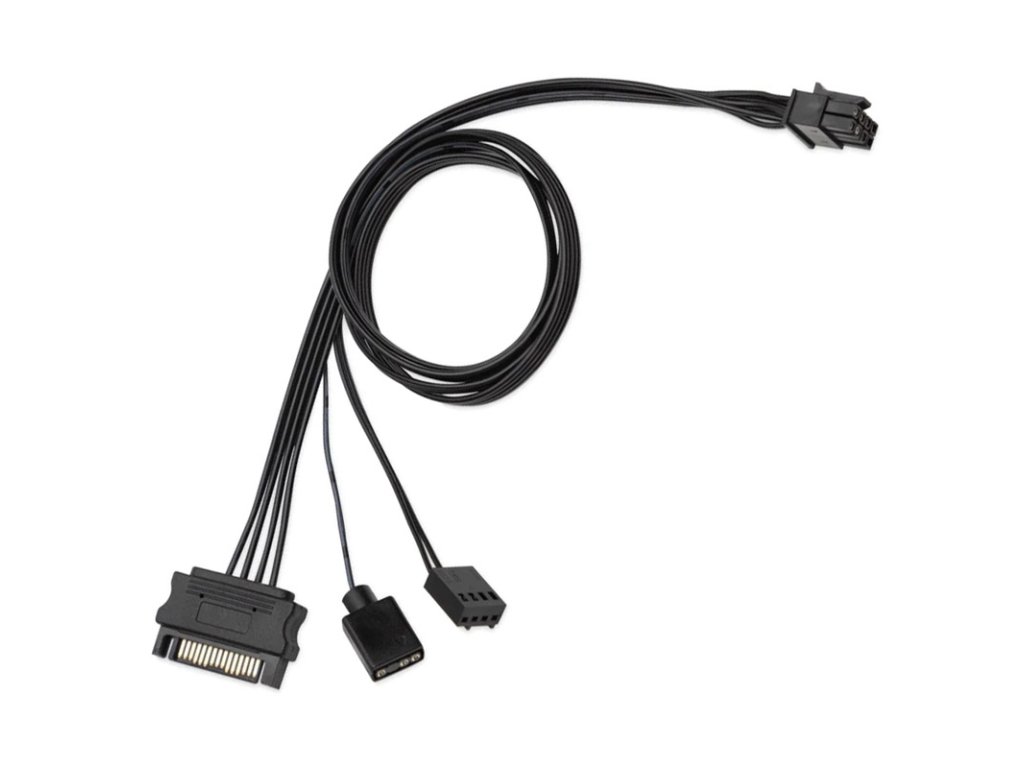 Napájací kábel EK Loop OmniLink SATA je začiatkom káblového systému OmniLink a má pripojenie SATA na napájanie, zásuvku D-RGB a 4-pinovú zásuvku ventilátora.