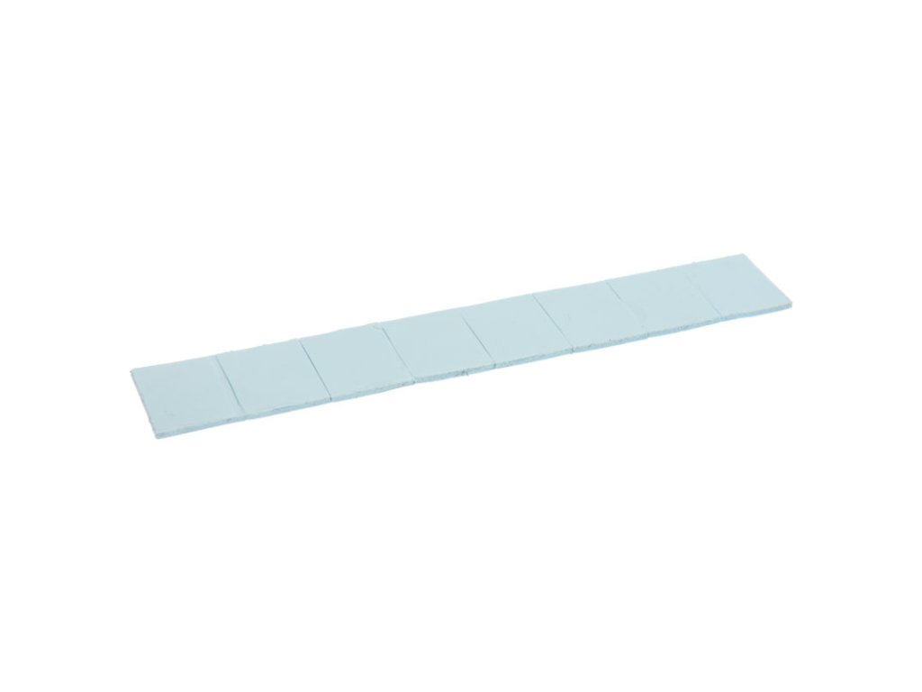 Tepelné podložky sú skutočnou alternatívou ku klasickým tepelným pastám pre mnohé aplikácie. Termopodložky majú oproti tekutým alebo viskóznym materiálom množstvo výhod. Podložky si napríklad môžete sami ľahko nastrihať na požadovanú veľkosť pomocou nožníc alebo rezačky, čím sa eliminuje neistota pri nanášaní pasty alebo rozmazávanie pri vyhladzovaní. Tu ponúkaná podložka od spoločnosti EK Water Blocks je už vopred narezaná na osem menších kusov, je mierne samolepiaca a zvyčajne drží vo vopred určenej polohe.Pri ďalšom priebehu inštalácie samozrejme nie je možné úplne upustiť od upevnenia, pretože zdroj tepla, tepelná podložka a chladič (alebo plocha na odvod tepla) by sa mali dotýkať čo najväčšej plochy, aby sa zabezpečil optimálny prenos tepla. Aj v tomto prípade EKWB vychádza používateľovi maximálne v ústrety tým, že modrá podložka s rozmermi 100 x 16 mm je k dispozícii v niekoľkých hrúbkach, pričom tu ponúkaná verzia má hrúbku 1,0 mm. Materiál je navyše príjemne pružný a prispôsobivý, takže je vhodný na použitie na mnohých miestach.