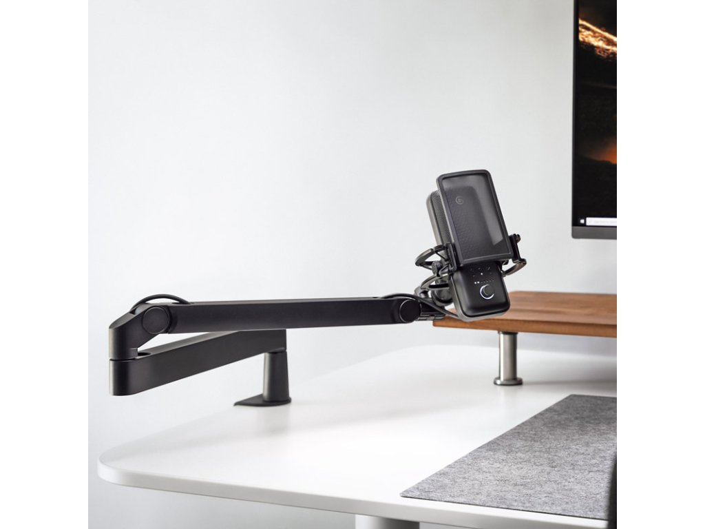 StránkaElgato Wave Mic Arm LP je vybavený čalúnenou svorkou na stôl, ktorá sa dá rozšíriť až o 60 mm, a preto sa dá pohodlne pripevniť na štandardné stoly. Káblový kanál na zadnej strane otočného ramena má magnetické kryty a zabezpečuje uprataný vzhľad na stole.