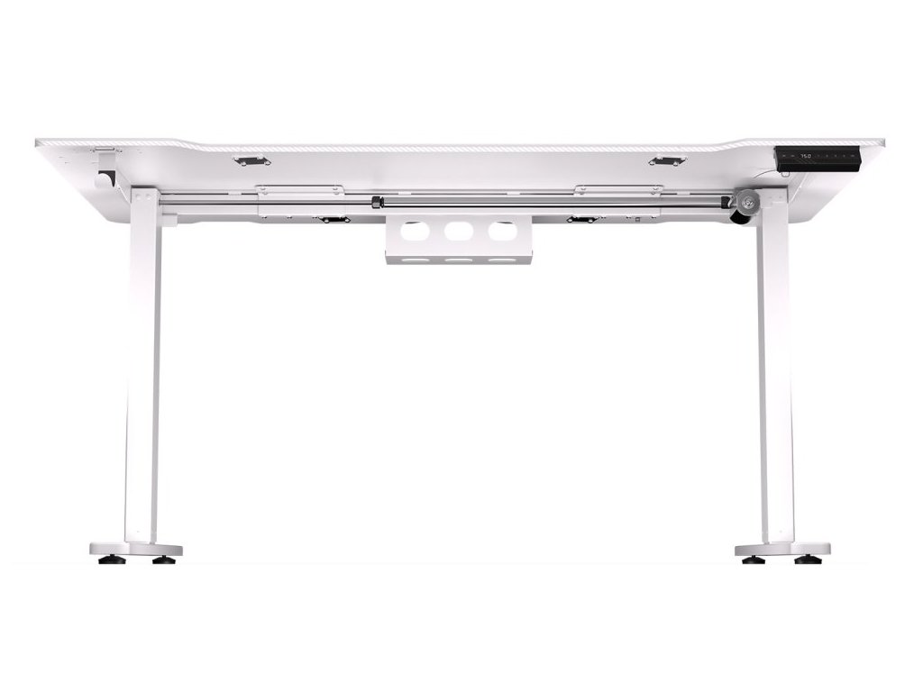 Herní stůl o délce 150 cm a šířce 78 cm nabízí dostatek prostoru pro myš, klávesnici a další příslušenství. Výšku lze plynule nastavit v rozsahu 73 až 120 cm pouhým stisknutím tlačítka na ovládacím panelu, který navíc umožňuje uložit až čtyři nastavení výšky. Na spodní straně desky je umístěn systém pro správu kabelů. Maximální stabilitu zajišťuje robustní ocelová konstrukce s nosností až 80 kg. Povrchová úprava desky stolu ve stylu uhlíkových vláken nejen dobře vypadá, ale je také odolná proti poškrábání. V neposlední řadě zajisté potěší kovová polička pro napájecí lištu na zadní straně a háček pro zavěšení sluchátek.