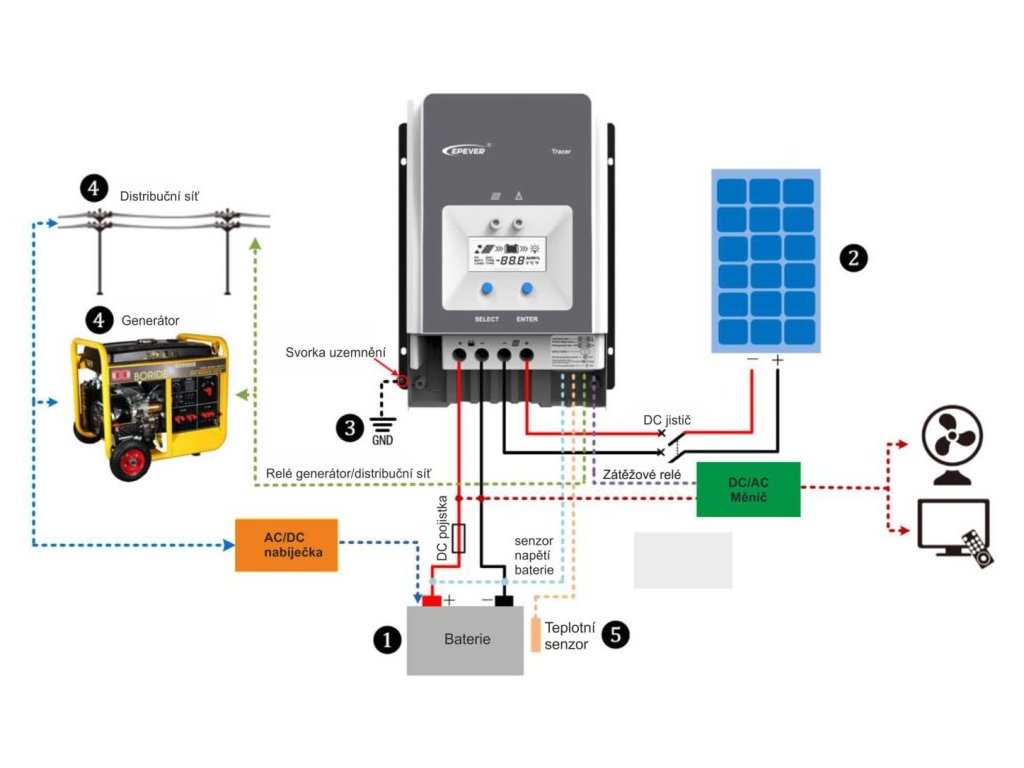 EPEVER TRACER6420ANVysoce výkonný MPPT regulátor slouží pro kontrolu toku energie ze solárního panelu nebo napájecího zdroje do baterií a spotřebiče. Pracuje se systémy na 12/24/36 i 48 V a s proudy do 60 A. Maximální vstupní napětí je až 200 V.