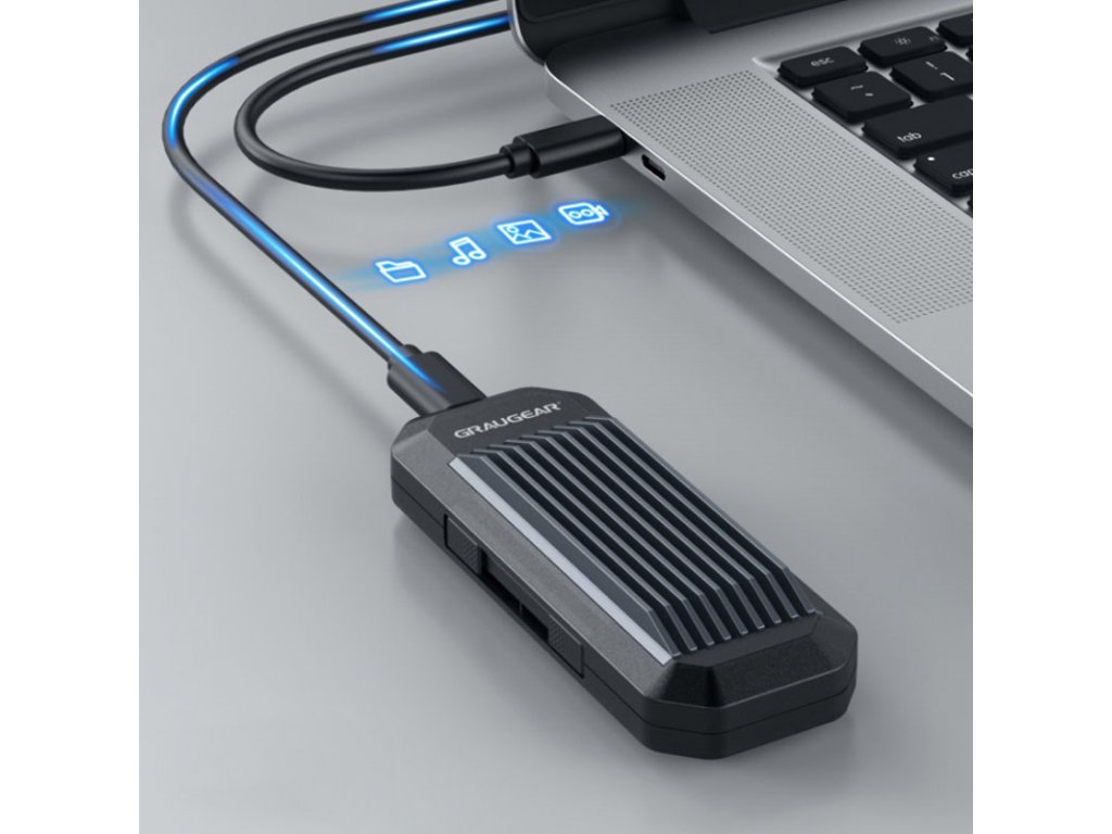 Skriňa podporuje PCIe 3.0 a dosahuje prenosové rýchlosti až 10 Gbit/s. Alternatívne je podporovaný aj protokol SATA, s ktorým je možné dosiahnuť rýchlosť až 6 Gbit/s. Súčasťou balenia sú dva káble USB-C, jeden s pripojením USB-C a druhý s pripojením USB-A na druhom konci.