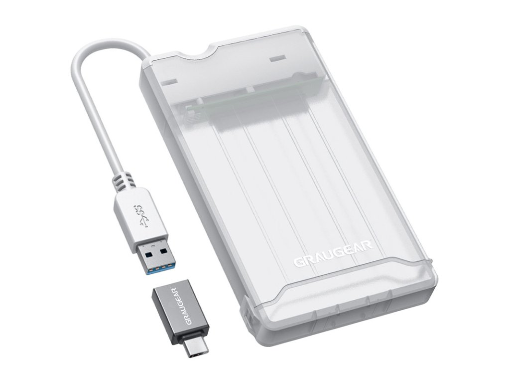 GRAUGEAR G-2503-AC 2,5" kryt SSD / HDD premení váš HDD / SSD na bezpečného a flexibilného spoločníka. Tento vysokokvalitný kryt ponúka priestor pre disky do výšky 9,5 mm a je navrhnutý pre neobmedzené kapacity. Vaše dáta sa bezpečne prenášajú prostredníctvom rozhrania USB 3.2 Gen1 s integrovaným káblom USB-C pôsobivou prenosovou rýchlosťou až 6 Gbit/s. A v neposlednom rade, na inštaláciu HDD / SSD disku nie sú potrebné žiadne nástroje, takže jeho nastavenie a používanie je mimoriadne pohodlné.