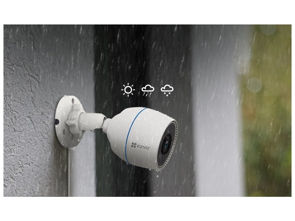 EZVIZ H3cVenkovní IP kamera nabízí snímač 1/2,7" CMOS s rozlišením 2 Mpx, který je schopný snímat video v rozlišení 1920 × 1080 při 30 fps. Pro případ zhoršených světelných podmínek je přítomen IR přísvit do vzdálenosti 30 m. Komprese H.265/H.264 snižuje nároky na přenos dat a úložiště. Natočené záznamy je možné ukládat na microSD kartu do kapacity až 512 GB, nebo odesílat na cloudové úložiště (na základě předplatného). Propojení kamery pomocí aplikace v mobilním zařízení umožní pohodlný vzdálený přístup, pořizování záznamů či fotografií nebo upozornění v případě detekce pohybu. Mezi další užitečné funkce patří například detekce člověka pomocí umělé inteligence a integrovaný mikrofon. Algoritmus umělé inteligence pomáhá snížit počet nevýznamných upozornění způsobených padajícím listím nebo létajícím hmyzem. Připojení lze jednoduše realizovat drátově prostřednictvím RJ-45 konektoru nebo bezdrátově pomocí Wi-Fi. Díky voděodolnému krytu dle IP67 nabízí jak vnitřní, tak i venkovní možnost použití.