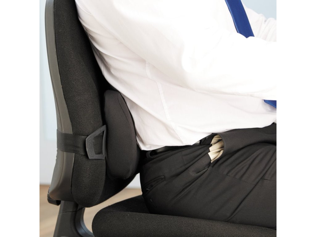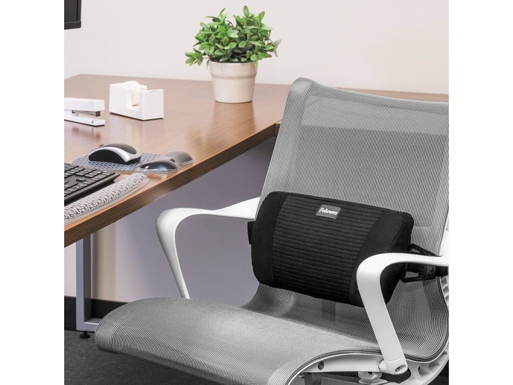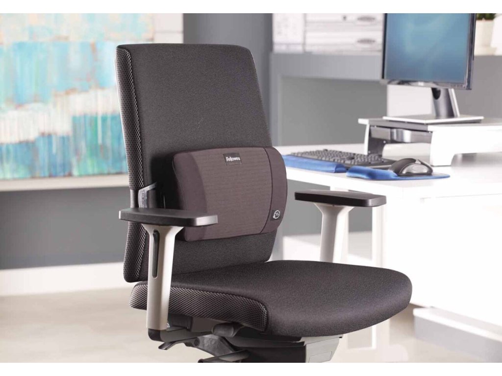 Fellowes PlushTouchPěnová opěrka zajišťuje podepření bederní páteře pro správné a pohodlné sezení. Snižuje napětí svalů a tím pomáhá předcházet problémům s páteří a nepříjemným bolestem zad. Nastavitelný pásek s odolnou přezkou umožňuje umístit opěrku tak vysoko, jak je potřeba. Inovativní paměťová pěna naplněná gelovými korálky zajišťuje maximální pohodlí. Vhodné do kanceláře, auta i domácnosti.