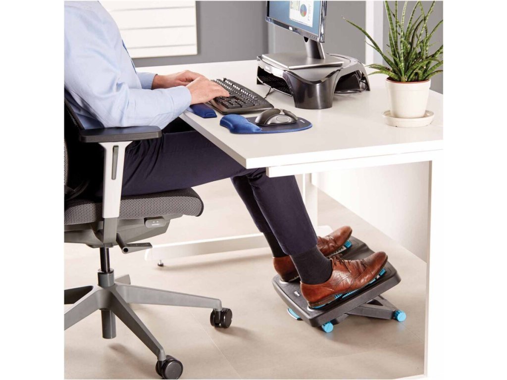 Fellowes EnergizerPodpěra chodidel zlepšuje držení těla, oběh krve a pohodlí při práci. Inovativní pryžový masážní povrch regeneruje unavená chodidla a snižuje stres. Snadným nastavením výšky a náklonu až 25° docílíte optimální polohy opěrné plochy.