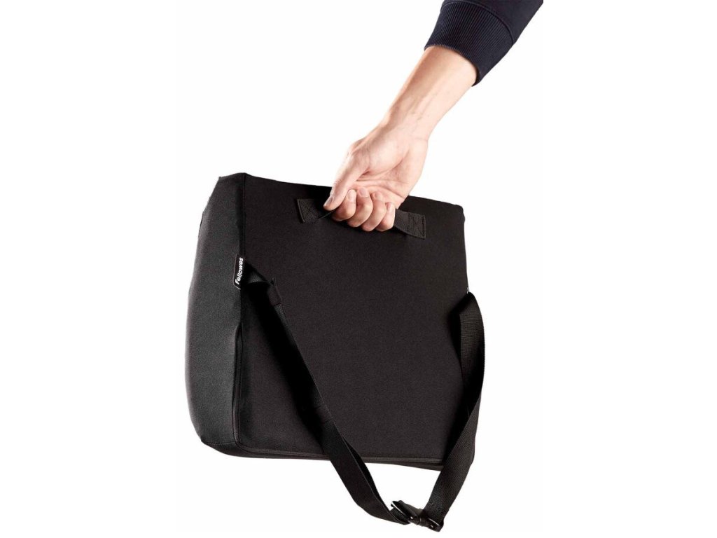 Zádová opěrka Fellowes Comfort BREYTA je řešením pro všechny, kteří denně tráví hodiny sezením u počítače v kanceláři nebo doma. Tato ergonomická zádová opěrka poskytuje oporu v kritické části beder a páteře a podporuje správné držení těla. Díky tomu předchází nadměrné zátěži, a z toho plynoucí bolesti nebo strnutí. Opěrka Fellowes Comfort BREYTA je vyrobena ze 100 % recyklovaného materiálu, takže se zavděčí i těm, kteří navíc dbají na ekologii. Pro snadné uchycení na židli slouží nastavitelný popruh, která rovněž drží opěrku na místě. Rukojeť umožňuje snadné přenášení. Pěnová výplň zajišťuje potřebný komfort a přizpůsobí se tvaru vašich zad.