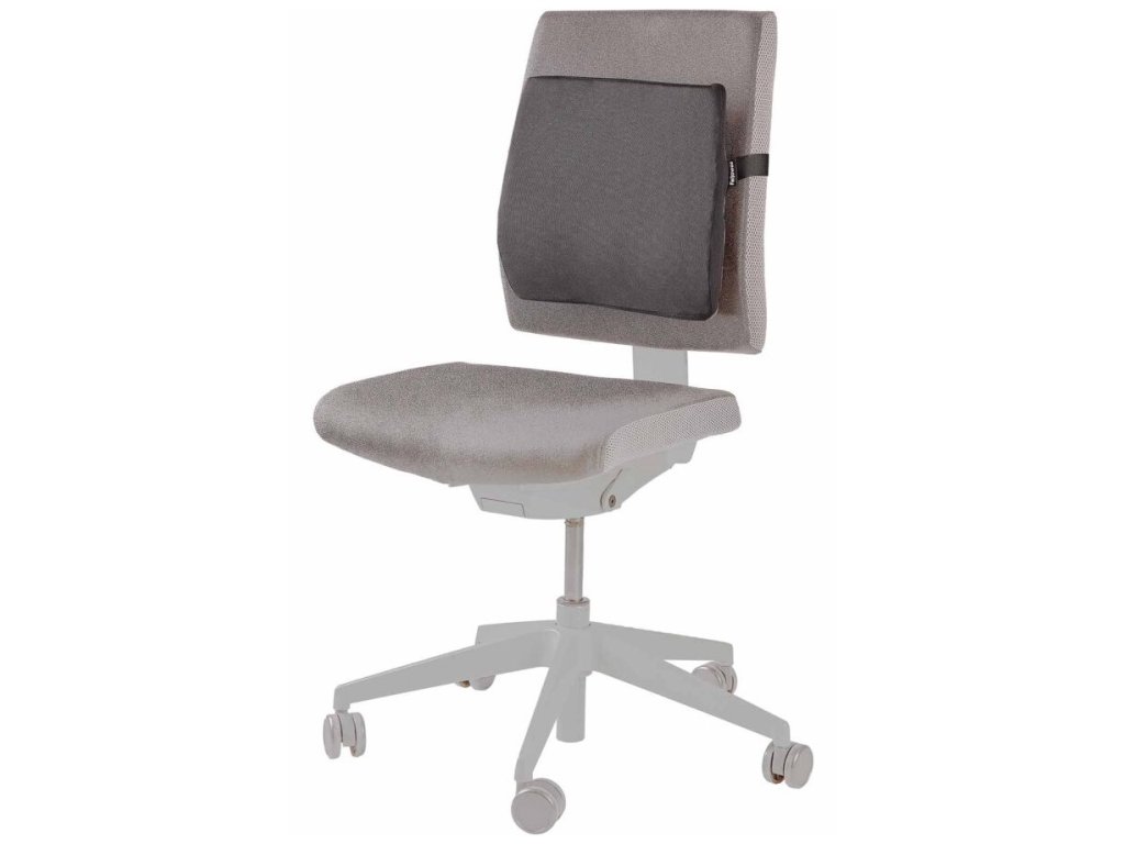 Zádová opěrka zajišťuje správné a pohodlné dlouhodobé sezení. Polštář poskytuje plnou oporu bederní i hrudní páteři a pomáhá udržovat přirozené zakřivení v dolní části zad, a tím redukovat napětí v zádech. Upínací elastický popruh umožňuje snadnou montáž ke každé židli. Potahová látka je vyrobená ze 100 % recyklovaného materiálu. Potěší také rukojeť pro snadné přenášení.