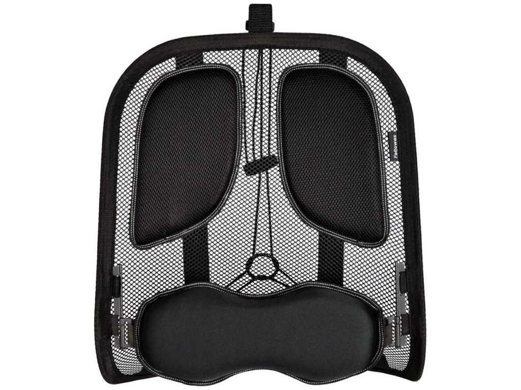 Fellowes ProfessionalErgonomicky navržená zádová opěrka redukuje napětí zad a usnadňuje zachování správného držení těla. V bederní části zad se nachází speciální podpěra z paměťové pěny s možností nastavení výšky. Celá opěrka je vyrobena z prodyšné síťoviny, která zaručuje proudění vzduchu a zvyšuje komfort. Upínací systém Tri-Tensioning umožňuje připevnění prakticky ke každé židli a eliminuje potřebu opakované regulace. Doporučena Mezinárodní akademií pro ergonomické produkty FIRA.