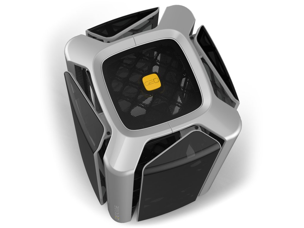 SM2 THE ARK ponukyGeometrická budúcnosť ponúka kompaktnú skriňu ITX, ktorá je vhodná na inštaláciu výkonného PC hardvéru. Napriek vzpriamenému tvaru skrine je inštalácia grafickej kartybez stúpacieho kábla možné, pretože základnú dosku možno inštalovať z boku. Súčasťou dodávky sú dva perforované bočné panely, ktoré štýlovo prezentujú nainštalovaný hardvér a poskytujúoptimálny prívod vzduchu poskytnúť.