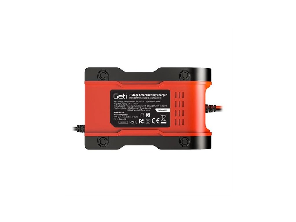 Inteligentní nabíječka GETI GCA002 je navržena pro nabíjení 12V a 24V lithiových, olověných nebo LiFePO4 baterií s kapacitou 6–120 Ah (12 V) nebo 6–60 Ah (24 V). Tyto baterie se běžně používají ve vozidlech, motocyklech, lodích, záložních zdrojích napájení nebo sněžných skútrech.