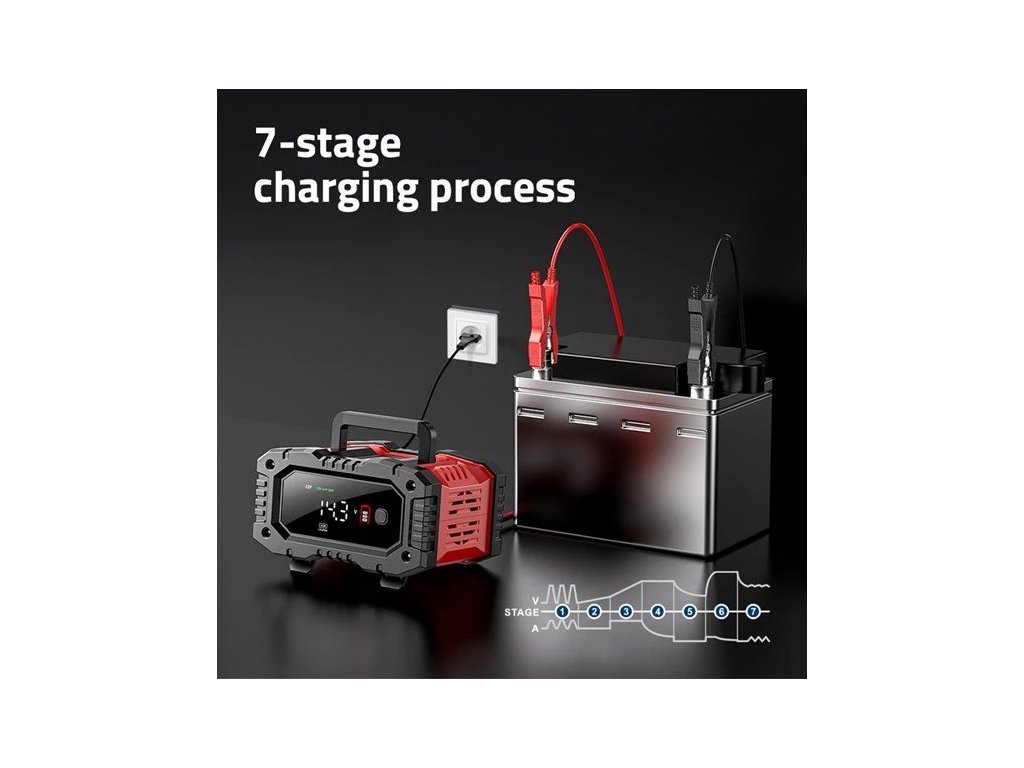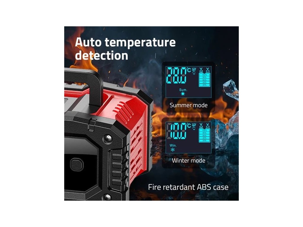 Nabíječka dokáže obnovit kapacitu baterie a nabíjet i velmi hluboce vybité baterie s napětím od 5V. Automaticky přizpůsobuje nabíjecí napětí teplotě, což zabraňuje poškození baterie. Po dokončení nabíjení přechází do udržovacího režimu, který udržuje baterii v optimálním stavu.