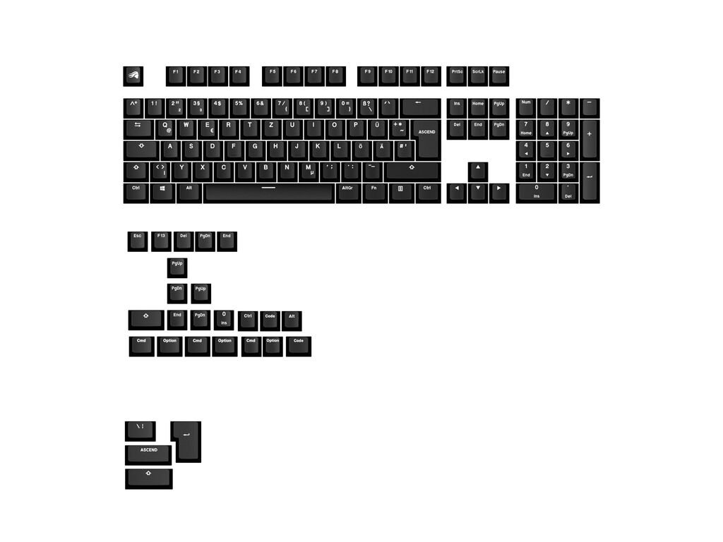 Glorious GPBT Basics Keycaps, ISO Layout (DE), PBT, Dye-Sub - Classic Black