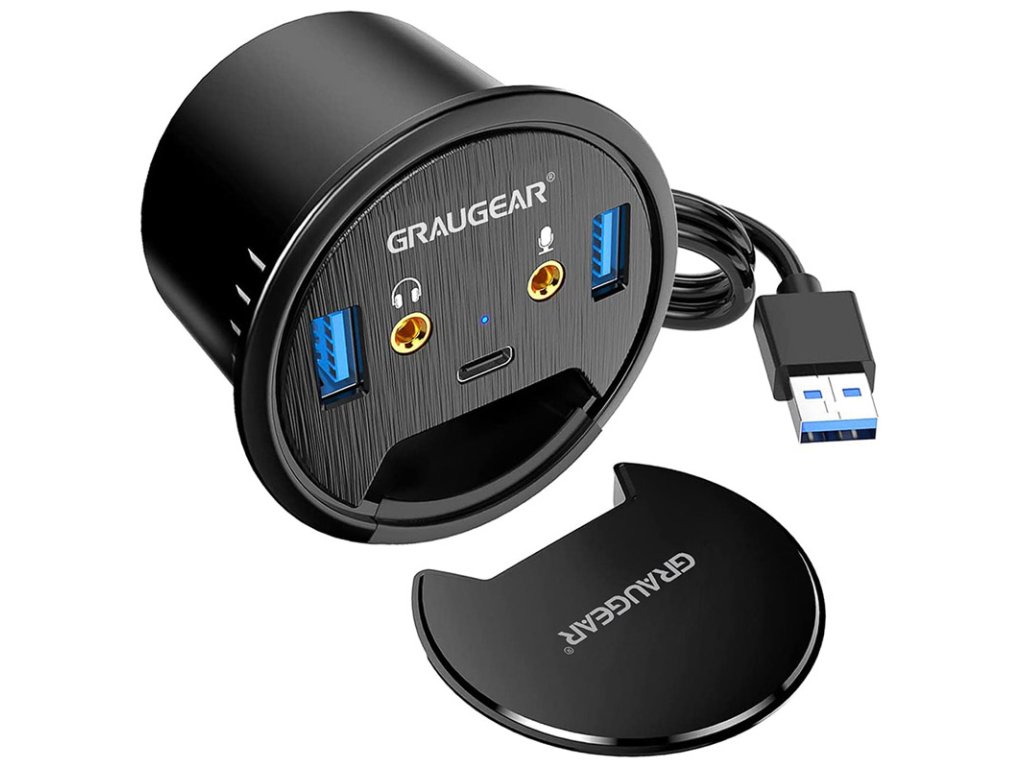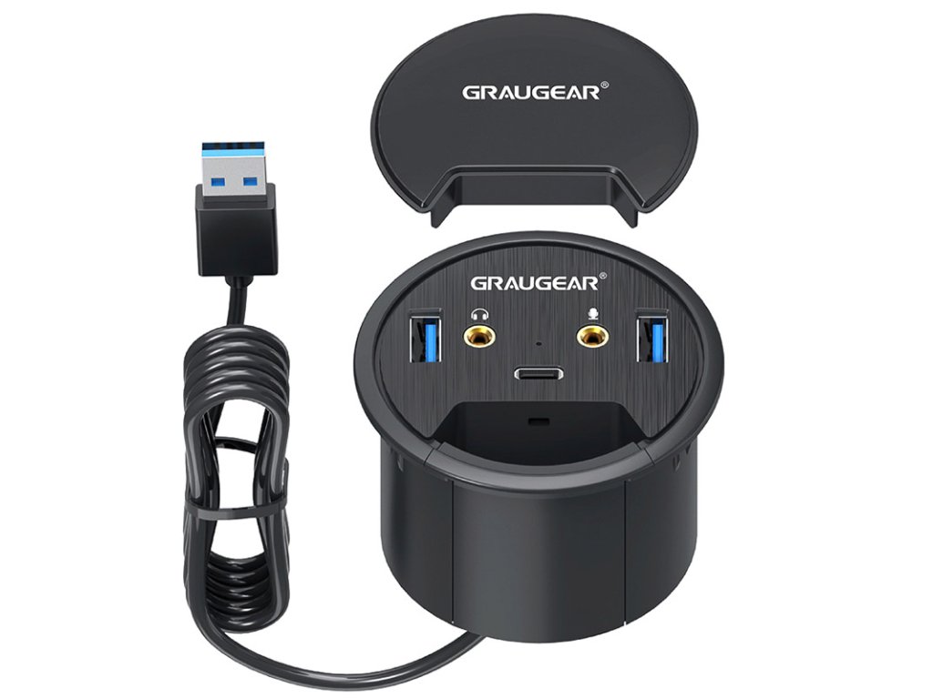 Rýchle porty USB 3.0 prenášajú súbory rýchlosťoudo 5 Gbit/s. Stolný HUB sa dá nainštalovať aj do káblovej priechodky s priemerom 60 mm bez použitia náradia.