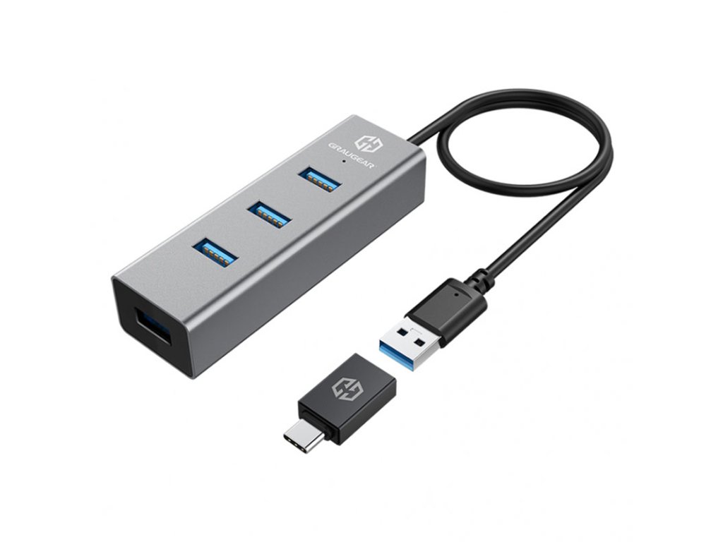 Graugear USB HUB, 4 porty, vrátane adaptéra USB-C