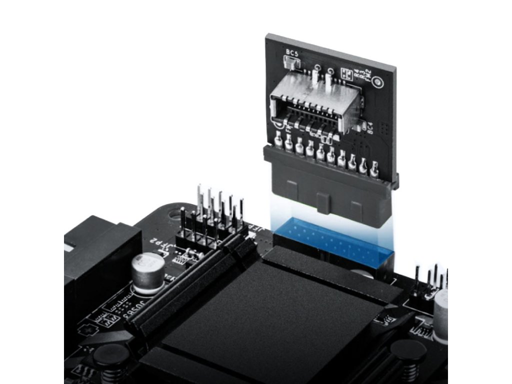 - Pripojenia základnej dosky: interný 19-pinový USB na interný 20-pinový USB (kľúč A)