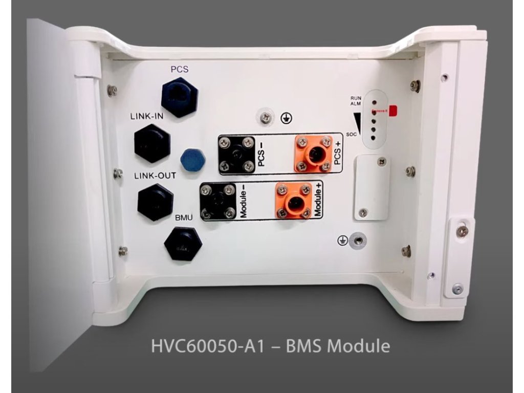 Řídicí jednotka (BMS) pro bateriové systémy ARK HV. Jednotka komunikuje s měničem, kontroluje stav nabití jednotlivých článků a má na starost jejich vyvážené nabíjení. Podporuje celkem 3 až 10 bateriových modulů ARK-2.5H-A1.