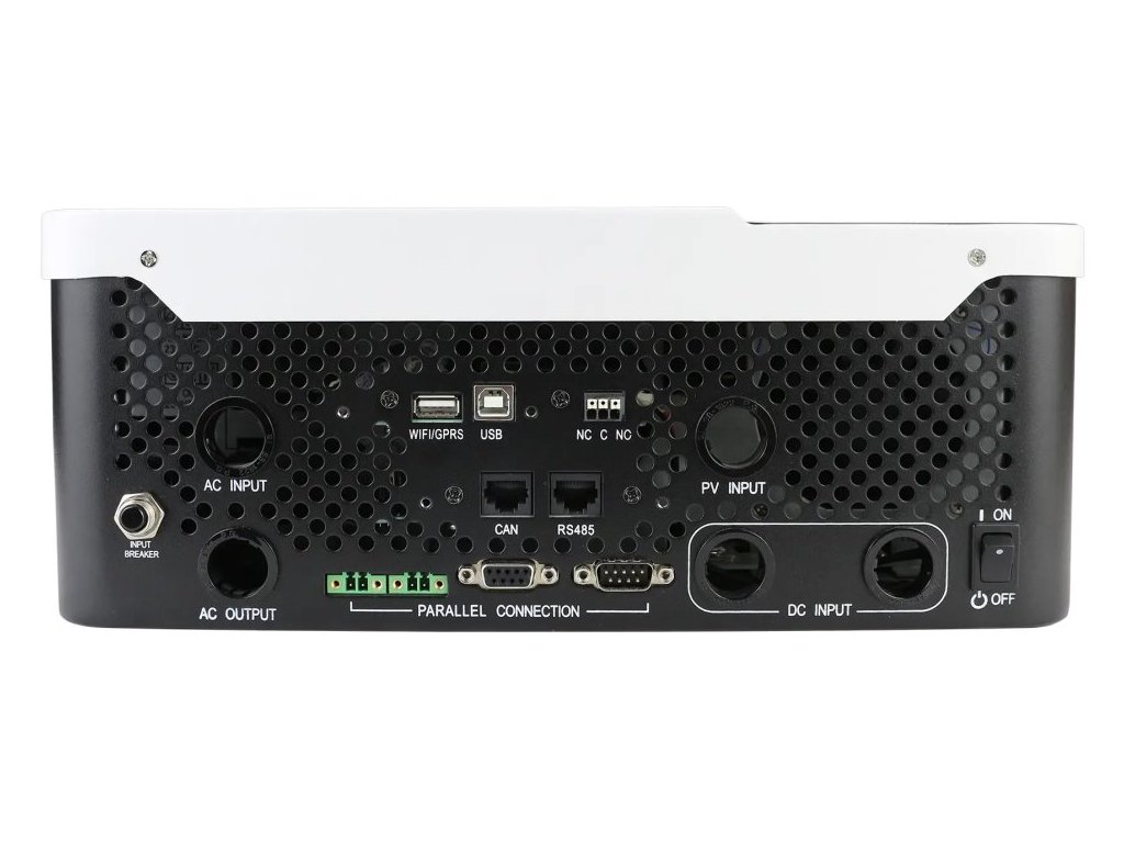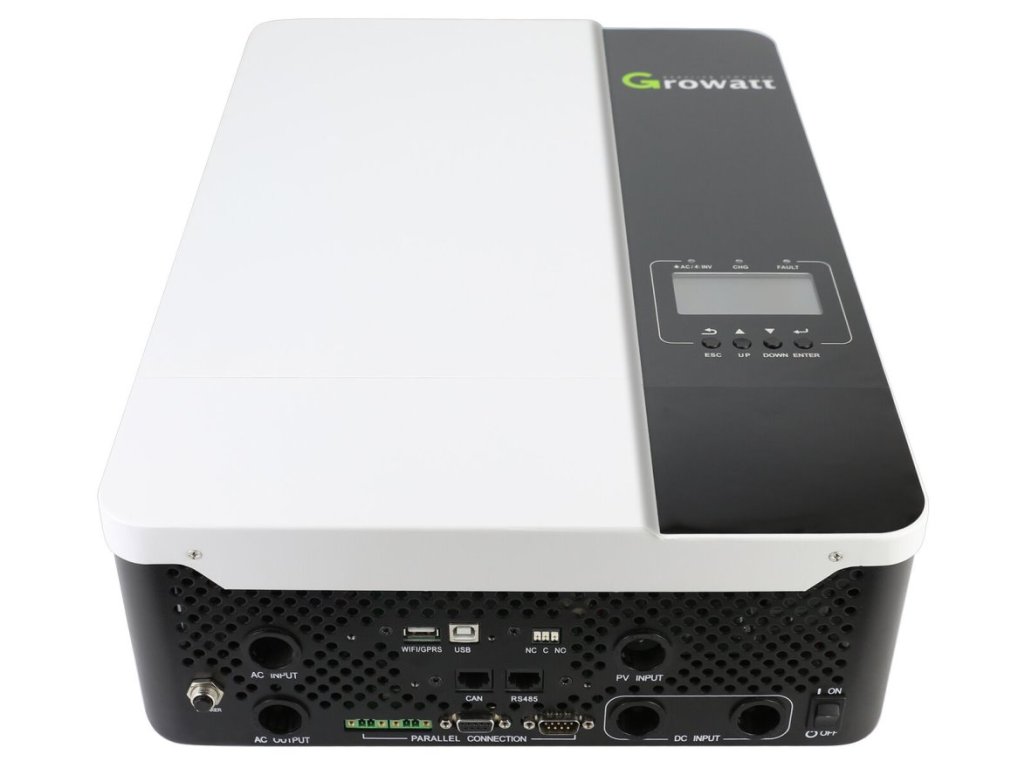 Growatt SPF 5000 ES měnič 5 kWMěnič Growatt SPF 5000 ES je optimální volbou pro tzv. ostrovní systémy bez dostupné distribuční sítě – k jednotce může být připojena elektrocentrála a/nebo baterie jako záložní zdroj energie. Jedná se o hybridní měnič se sinusovým výstupem ideální pro domácí a malé komerční systémy. Vestavěný MPPT regulátor zvládne až 6 kW FV pole s maximálním napětím na prázdno 450 Voc. Umí pracovat jak s olověnými, tak i Li-ion akumulátory. Samozřejmostí jsou porty RJ-45 pro CAN/RS-485 komunikaci s BMS modulovými akumulátory LiFePO4 značek např. Pylontech, WECO, Seplos atd.