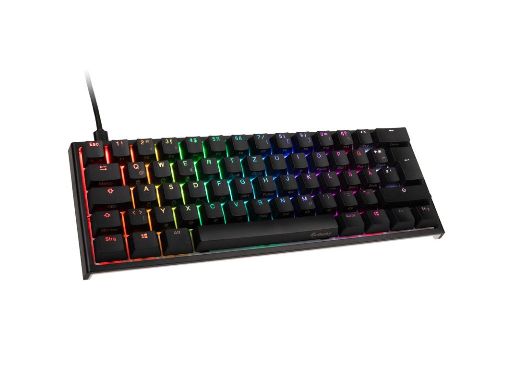 S mimoriadne kompaktnýmRozloženie klávesnice TKL mini chýba nielen numerická klávesnica, ale aj klávesy so šípkami, blok s klávesmi insert a delete, ako aj klávesy press, numlock a pause. Chýba aj celý rad klávesov F. Všetky chýbajúce klávesy sú integrované do zvyšných 61 klávesov a možno ich aktivovať klávesom Fn. Výsledkom tohto rozloženia TKL mini alebo 60 % je mimoriadne prenosná a ľahká klávesnica, ktorá na stole zaberá málo miesta.Kryt hernej klávesnice Ducky One 2 Mini je dvojfarebný: zatiaľ čo vrchná časť je čierna, rám a spodná strana klávesnice sú biele. StránkaKľúčenky sú vyrobené z polybutyléntereftalátu, skrátene PBTsa vyrábajú procesom dvojitého odstrelu a súvýrazne dlhšia životnosť ako kľúče vyrobené z ABS (akrylonitrilbutadiénstyrén).