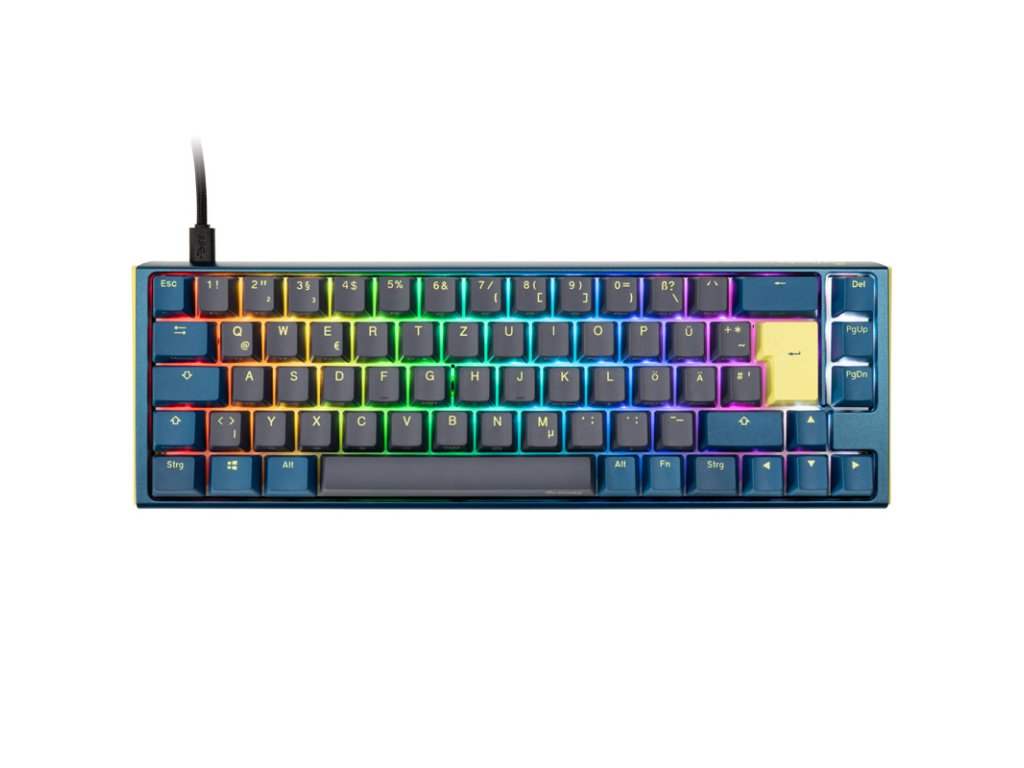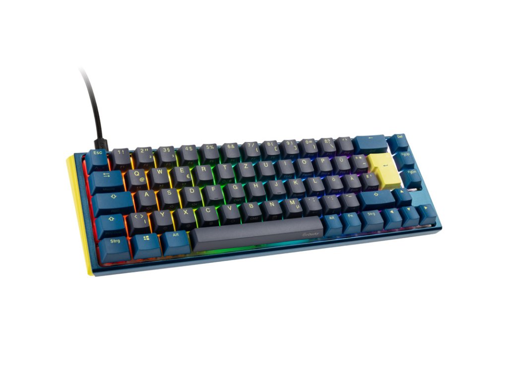 Mechanická herná klávesnicaDucky One 3 bol vyvinutý tak, aby vám ponúkol čo najlepší zážitok z písania. Ducky One 3 ponúka hráčom a nadšencom klávesníc luxusný zážitok z písania vďaka vysokokvalitnej povrchovej úprave a krátkej odozve. Spínače navyše nie sú spájkované, ale namontované na zásuvkách. Vďaka tomu sa dajú veľmi ľahko vymeniť bez akéhokoľvek spájkovania.Tu ponúkaný variant Ducky One 3 je v65 percent SF form factor je menšia. Vďaka vynechaniu numerickej klávesnice, funkčných klávesov a niektorých navigačných klávesov zaberá na stole ešte menej miesta ako štandardná klávesnica TKL, ale je tiež menej vhodná na kancelárske aplikácie. Kvôli úspore miesta sú odsadené aj klávesy so šípkami.