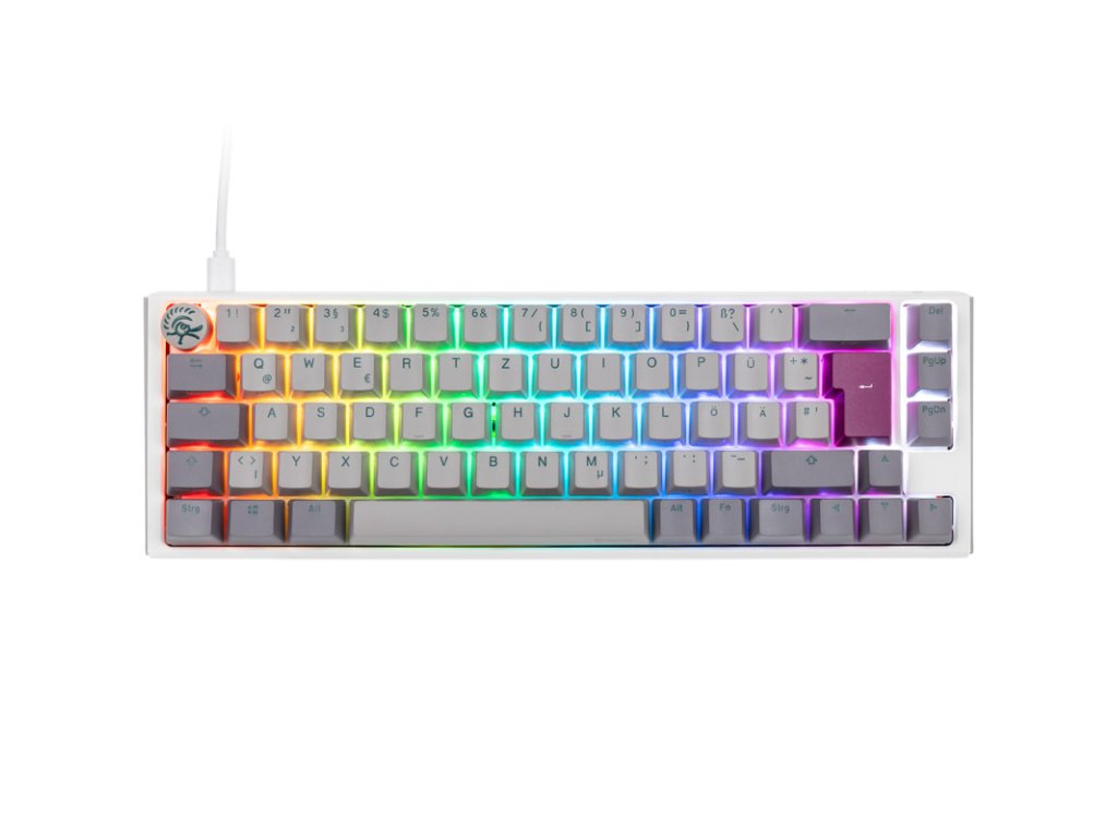 - Herná klávesnica vo formáte SF (65 %) s rozložením kláves DE