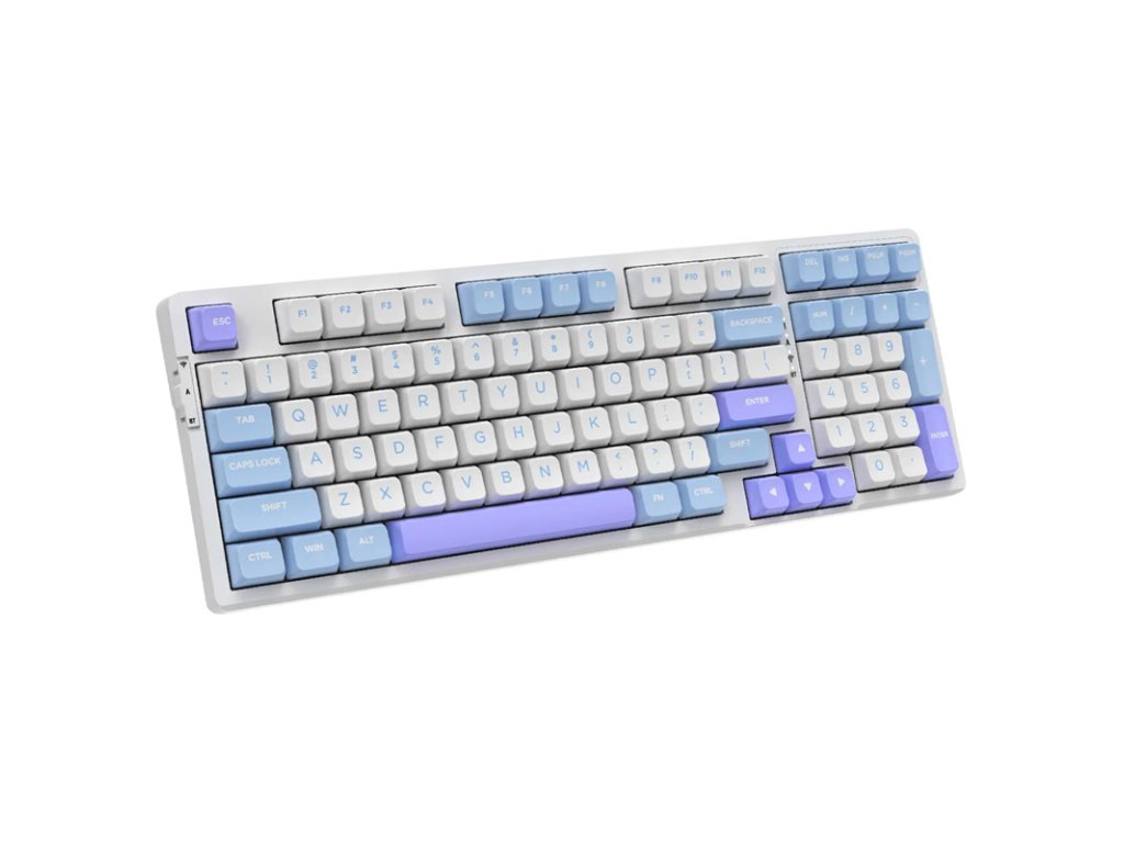 Klávesy v bielej/svetlomodrej/fialovej farbe svojím štýlovým dizajnom dokonale zapadnú do vašej zostavy a budú pútať pozornosť na každom stole. Ak si želáte, môžete klávesnice jednoducho vymeniť.