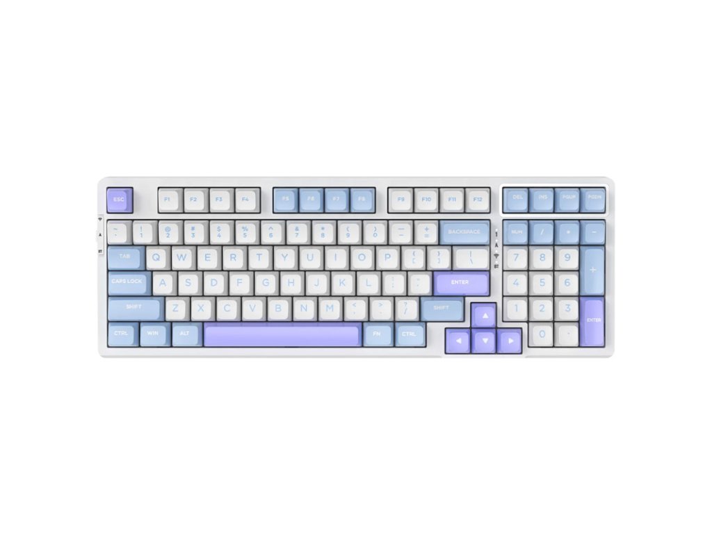 StránkaVGN V98 Pro je vysokokvalitná bezdrôtová klávesnica s trojitým pripojením v dizajne s tesnením a fascinujúcim podsvietením RGB so štýlovými svetelnými efektmi. Vďaka numerickému bloku vám klávesnica ponúka plný rozsah funkcií klávesnice plnej veľkosti, ale vďaka členitému rozloženiu klávesov zostáva kompaktná.