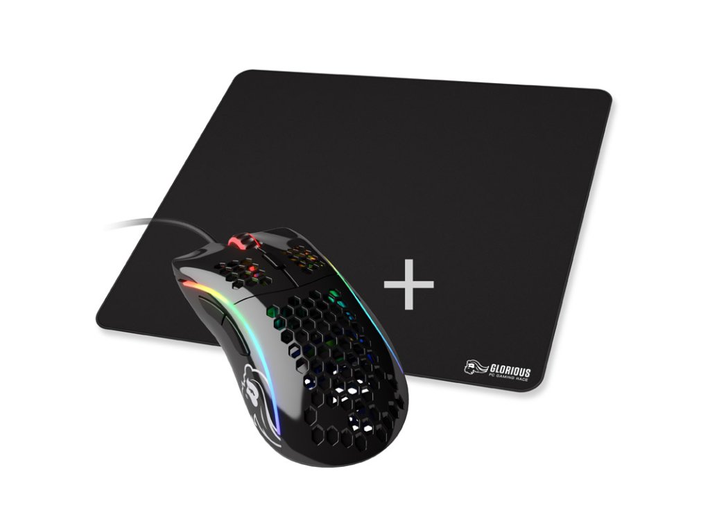 Herná myš Glorious Model D - čierna, lesklá + podložka pod myš - XL